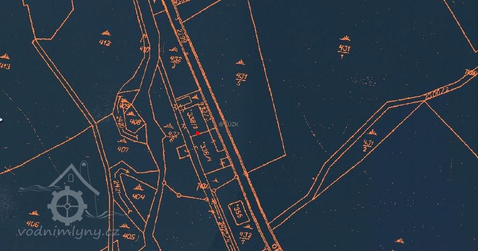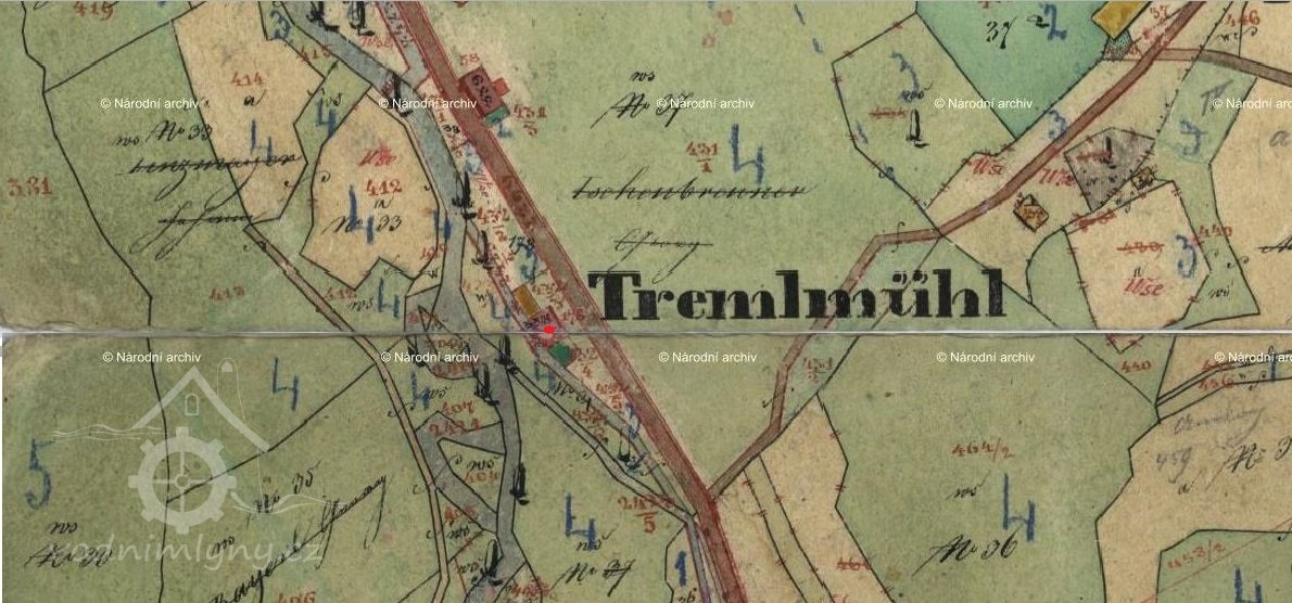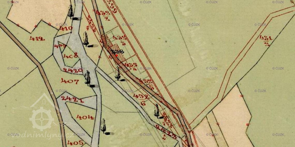 V 19. stol. mlýn přestavěný na brusírnu skla.
