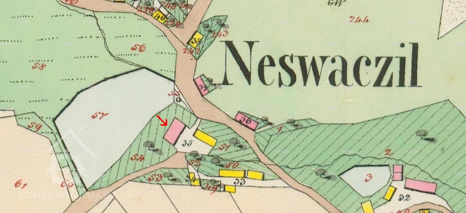 Popis1930: 1 kolo na svrchní vodu, hltnost 0,05 m3/s, spád 5 m, výkon 2,2 HP