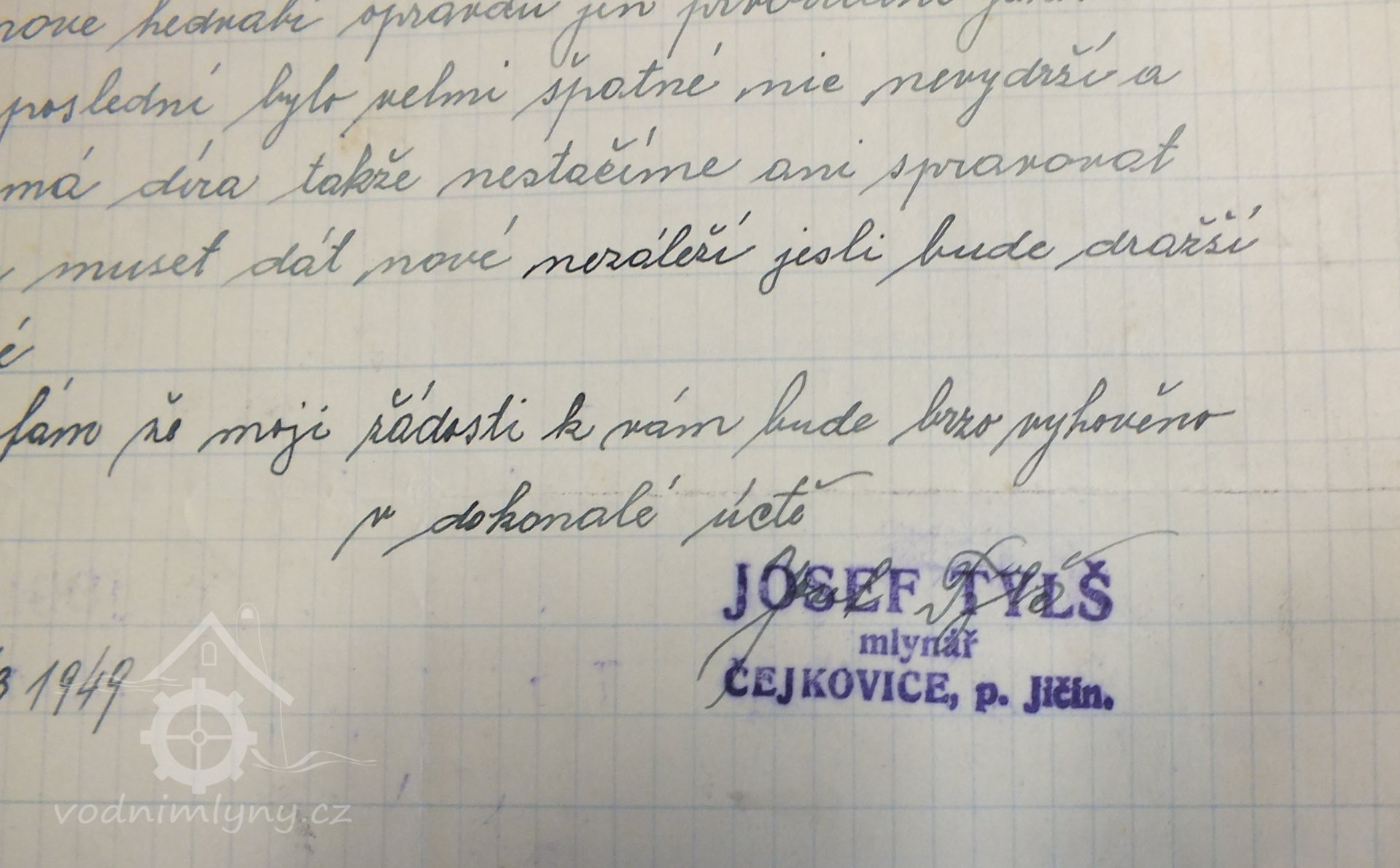 Zatímco před polovinou 19. století je mlýn zaznamenán se třemi koly, roku 1930 mlýn pouze o jednom kole na svrchní vodu vlastnil Josef Jedlička.