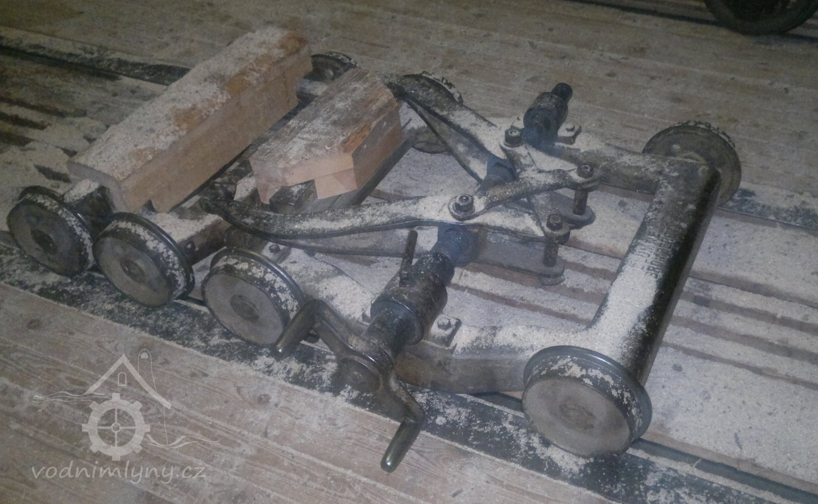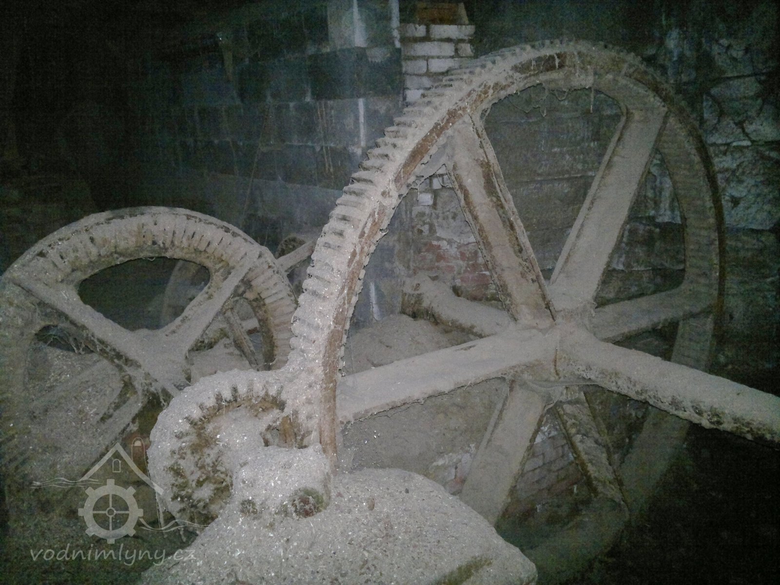 Stroje mlýna: válcová stolice, loupačka, vysévače (předvysévač, moučný), stroj krupičný na čištění a třídění, stroje čistící, filtry, kapsové dopravníky a transmise. V podkolí pravoúhlý palečný převod přes dřevěné paleční kolo, jehož palce zapadaly do litinného pastorku na hřídeli s řemenicí, která poháněla hlavní transmisi mlýna.