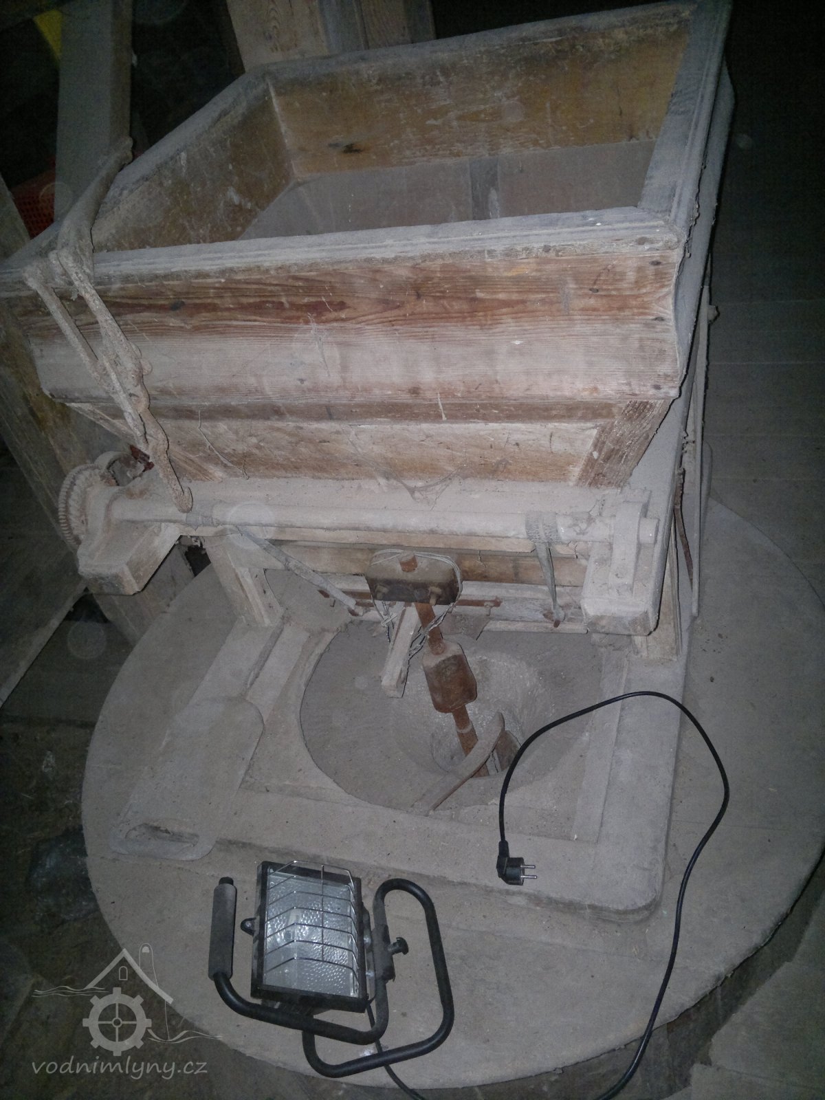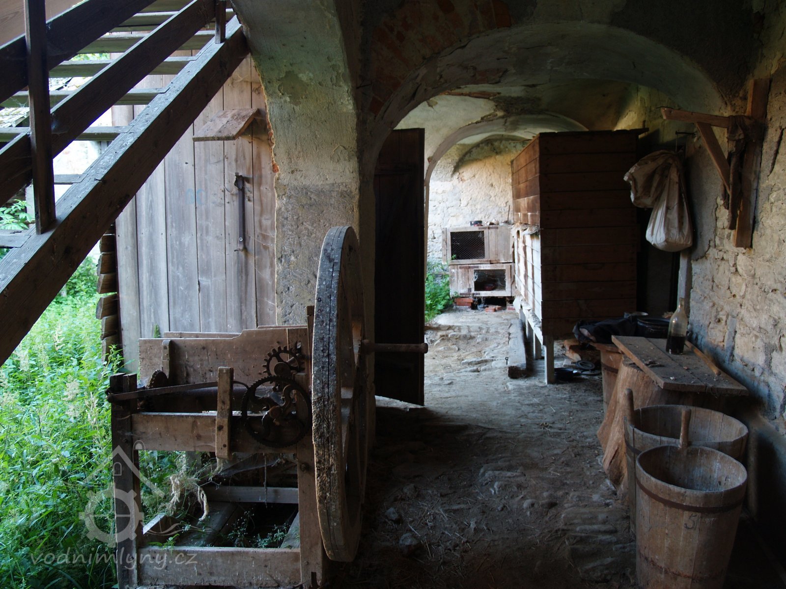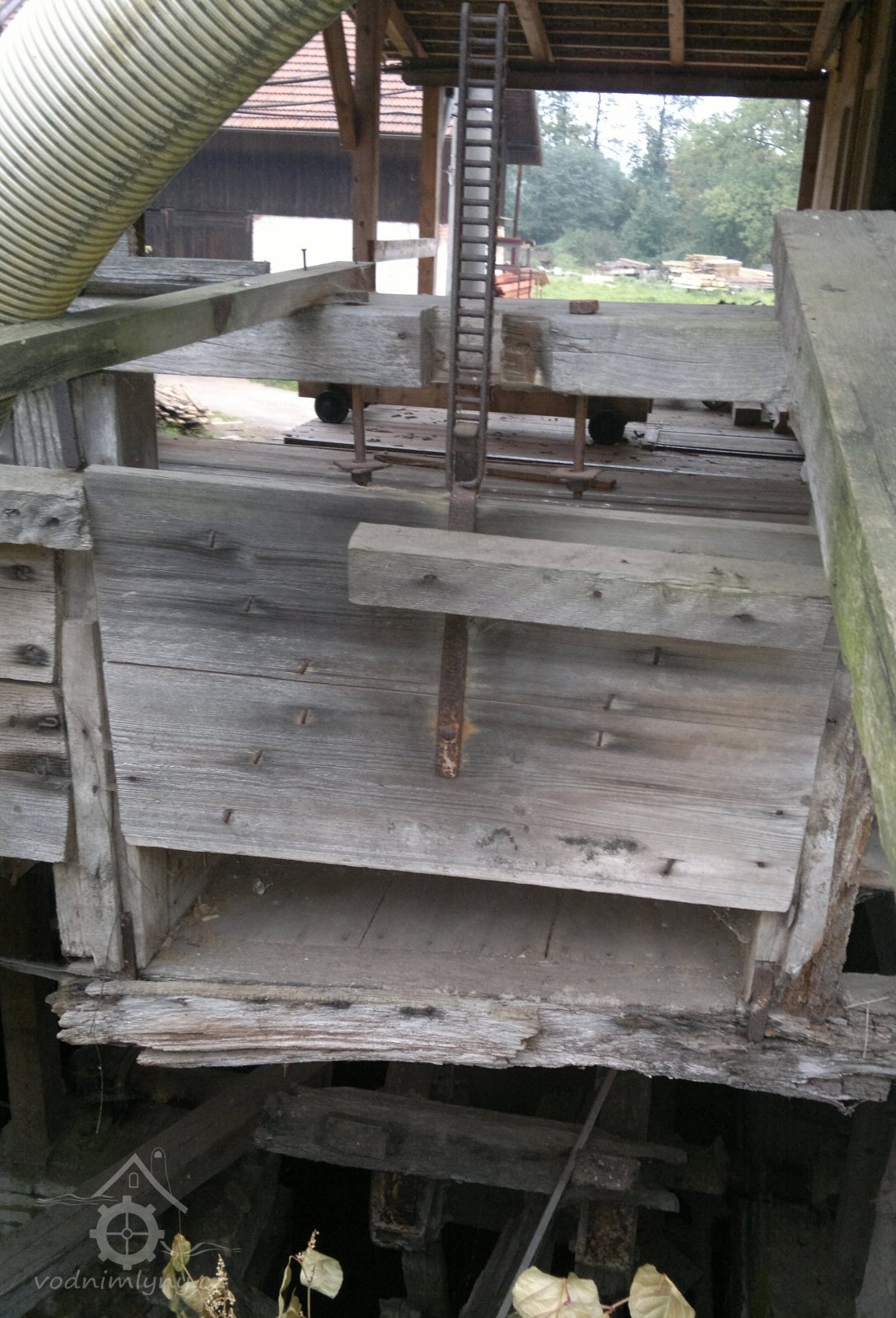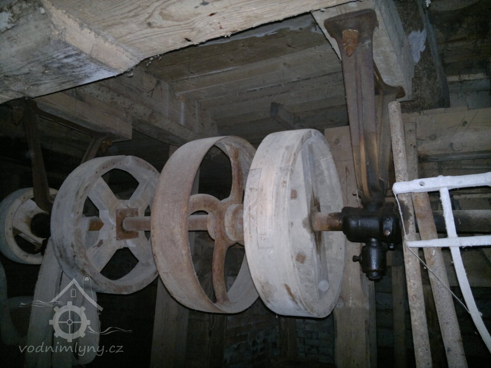 Voda šla od jezu delším náhonem, mezi mlýnem a pilou byl vstup dřevěnými vantroky do lednice na vodní kolo pily a mlýna, později na Bánkiho turbínu.