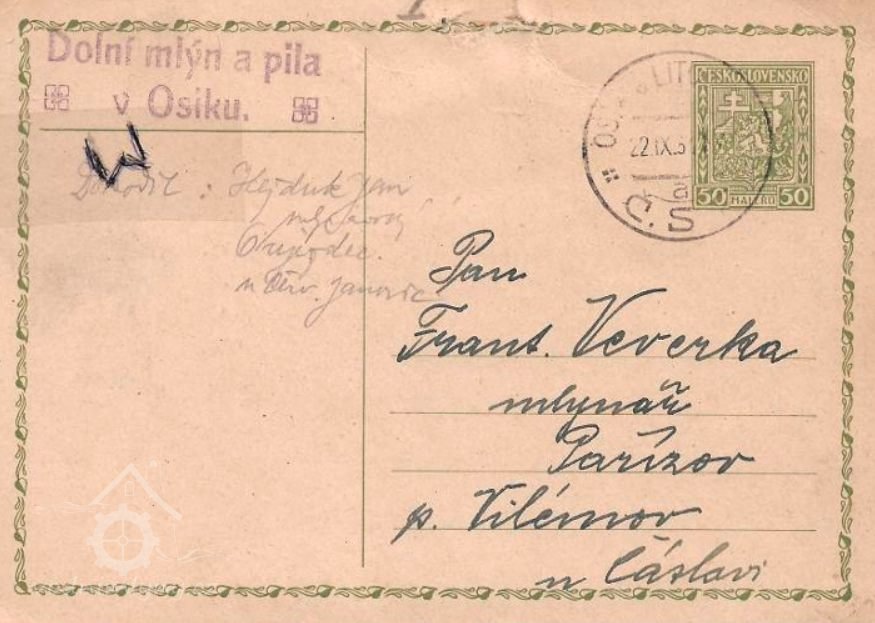V roce 1930 je vlastníkem mlýna, pily a elektrárny František Veselík.