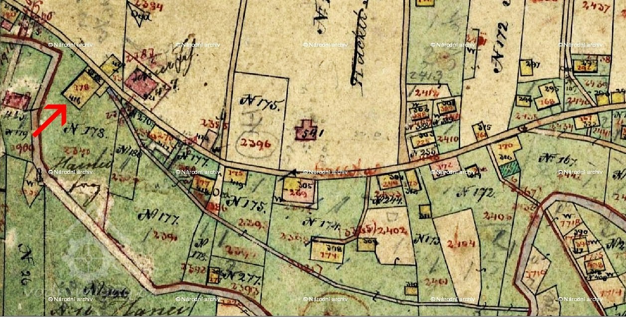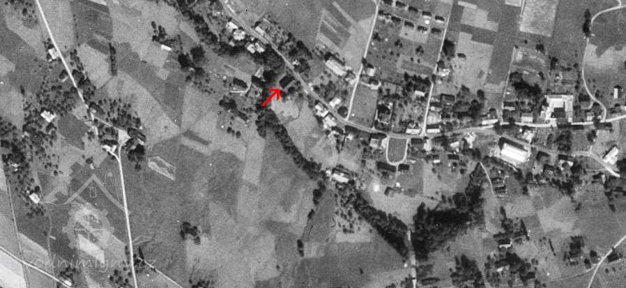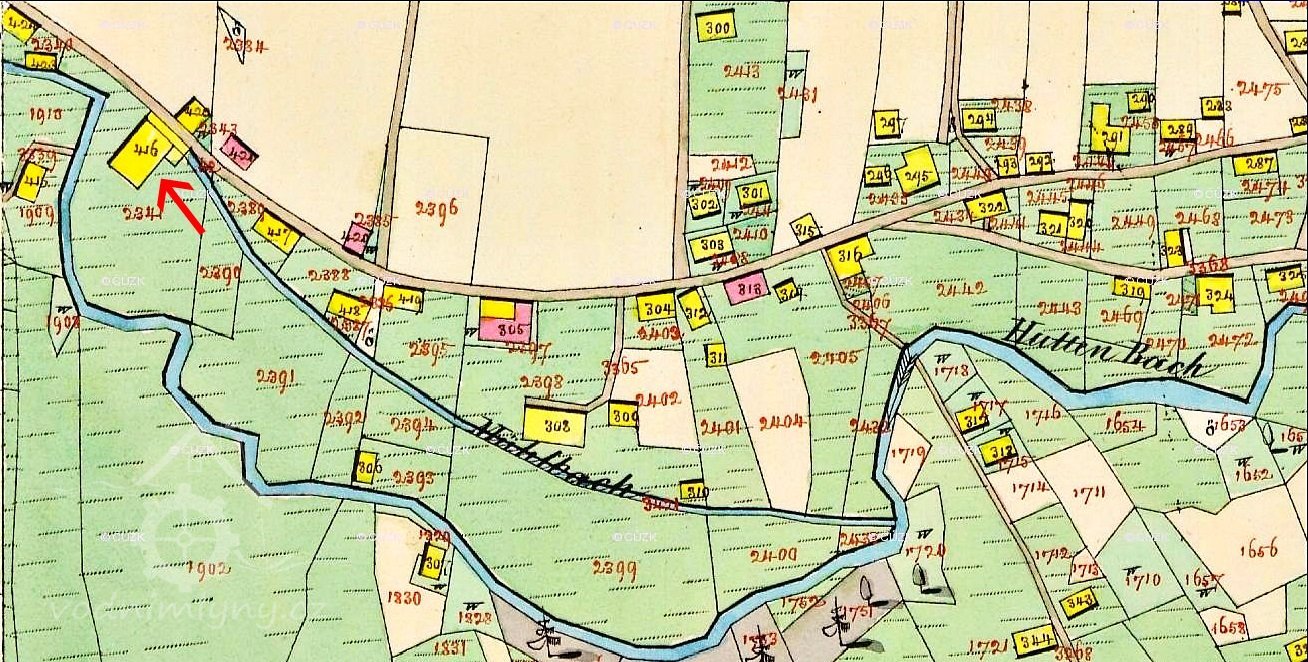 Mlýn se nacházel v zastavěném intravilánu protáhlé obce.