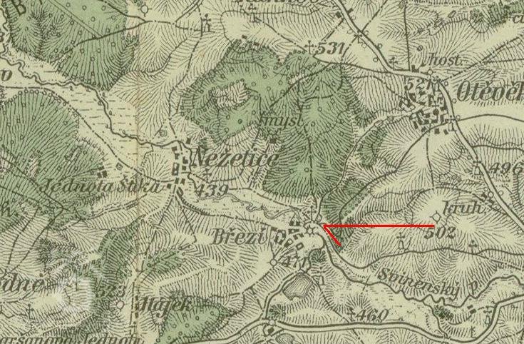 1880 Březí - počet obyvatel české národnosti 184, 34 domů, dva mlýny