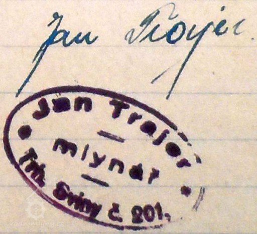 jednota Ficlův mlýn, č.p. 201 (pozn. spojeno s čp. 202) - Jan Trajer, mlynář (*22. 4. 1867)