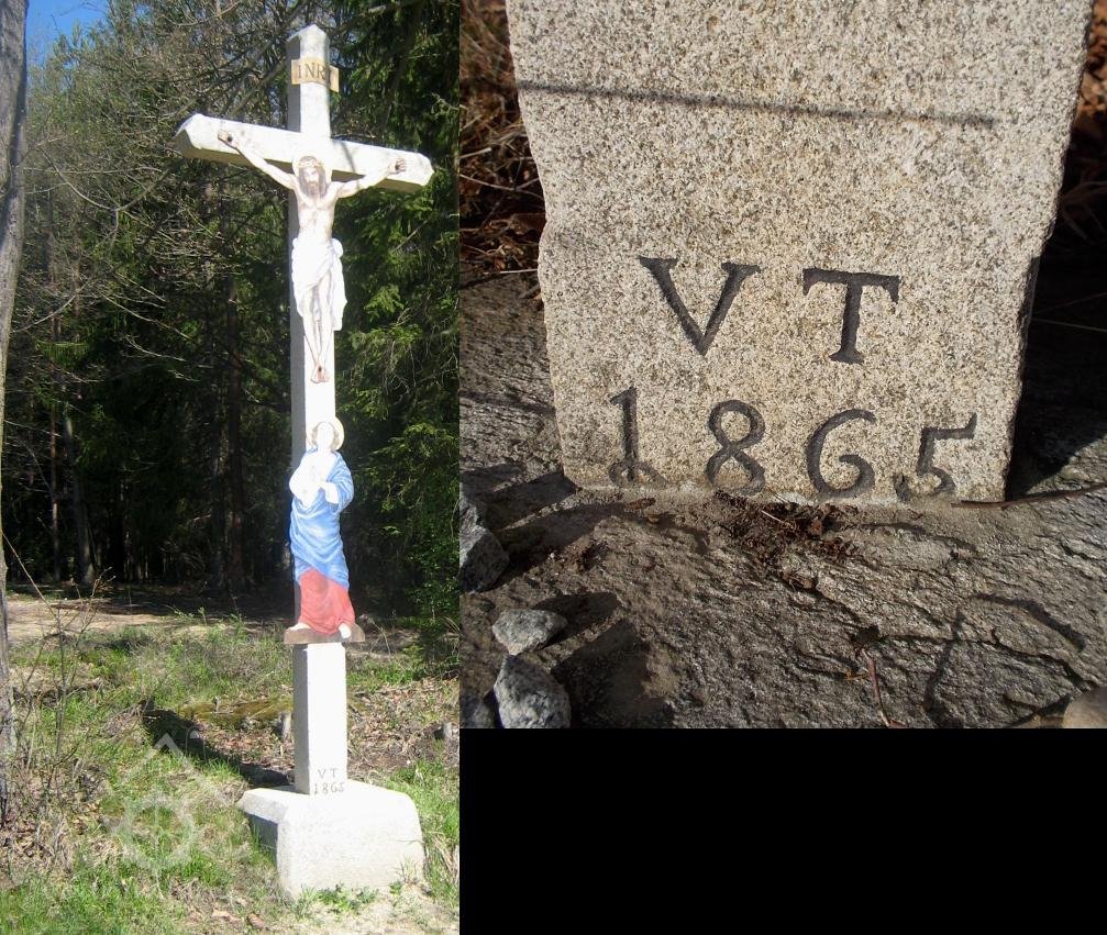 Dle mapy z r. 1895 zde přibyla cesta ze směru od sv. Trojice na Lniště (ta byla zřejmě upravenější než výše jmenovaná). Na křižovatce prodloužené cesty od Valchy také vznikl roku 1865 kamenný kříž. Nese iniciály VT a letopočet 1865 - jde pravděpodobně o (Václava?) Trajera.
