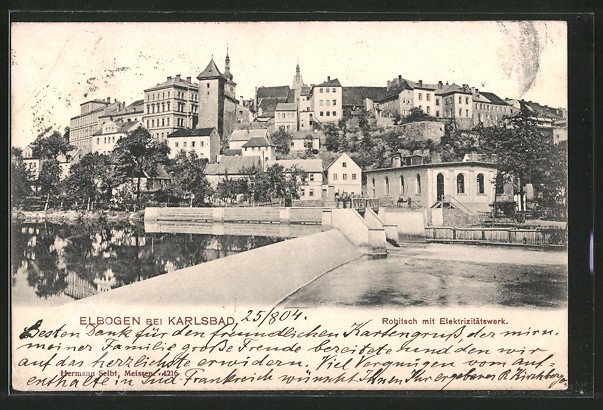 Odkazhttp://www.ak-ansichtskarten.de/ak/93-old-postcard/22869-City-Loket-Elbogen/5708049-AK-Elbogen-Robitsch-mit-Elektrizitaetswerk
