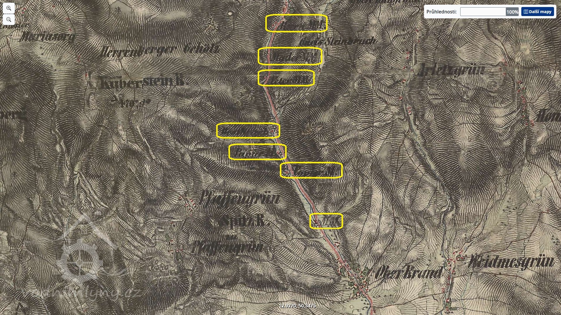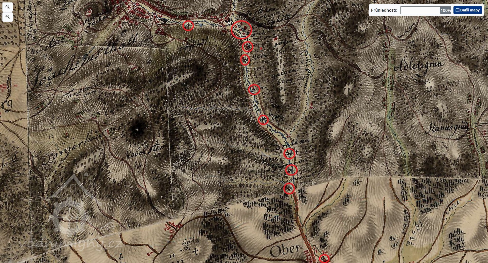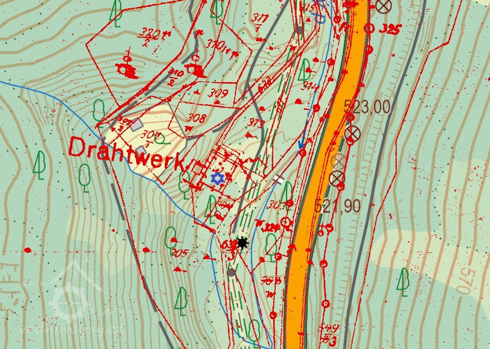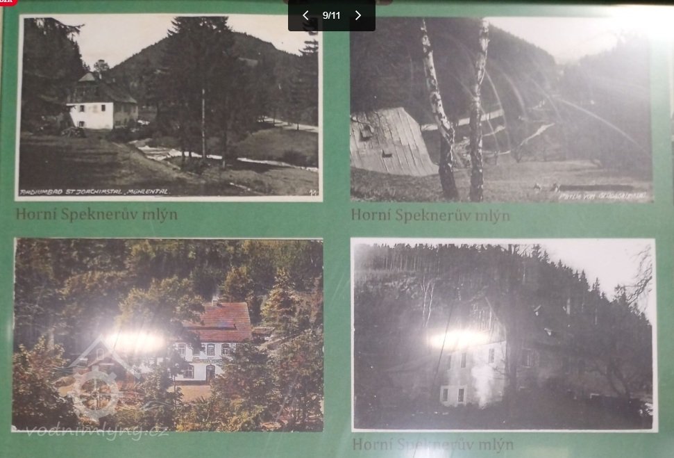 Obere Speknermühle (Horní Speknerův mlýn). Původně železný hamr, přestavěný pro nedostatek rudy na obilný (moučný) mlýn s pilou. Takto je značen na mapě Chebského kraje z roku 1715. Na mapě Thermas Carolinas z roku 1742 je již značen jako drátovna. Také kronika Jáchymova do roku 1720 hovoří o mlýnu, po tomto roce již o drátovně. V roce 1932 se stal nájemcem Jakub Wondraschek a ten zde zavedl výrobu šindelů. Mlýn disponoval pětimetrovým kolem a během II. sv. války sloužil jako obytný dům. Po válce zůstal neobydlen a nakonec byl pro zchátralost stržen. Na jeho místě byla později postavena malá vodní elektrárna.