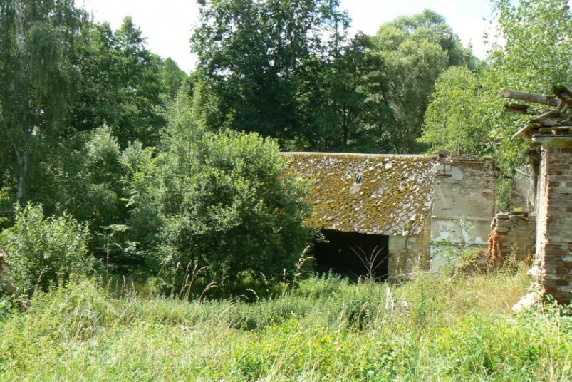 Mohutný objekt mlýna jež se i přes plány nedočkal rekonstrukce a proměnil se ve zříceninu (stav 2012).
