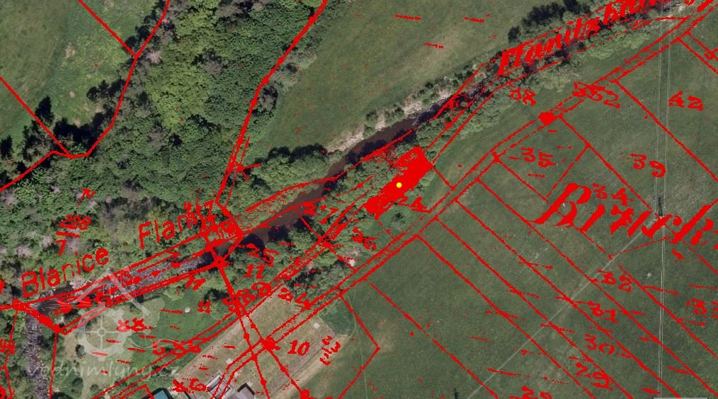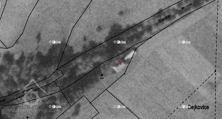 Mlýn ležel na společném náhonu s Panským mlýnem (viz. vlastní karta)