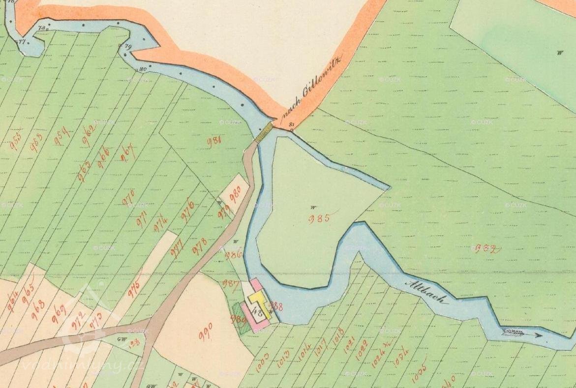 1534 Brousek od mostu z Blatníkova mlýna