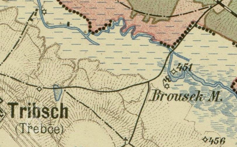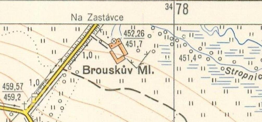 * pozn. - Brouskův mlýn a nedaleký Nožičkův (který dnes již neexistuje) bývaly pod jedním majitelem, Nožičkův (Nuskův, Noskův) sloužil jako výměnek pro mlynáře, kteří odstoupili Brouskův mlýn synům.