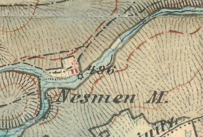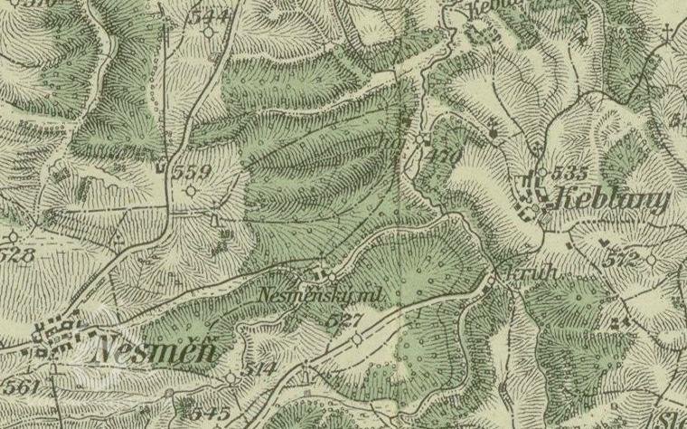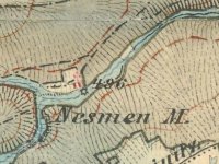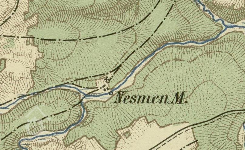 Zřejmě poprvé označen jako "Nesmen M." na mapě III. voj. map. z let 1877-1880.
