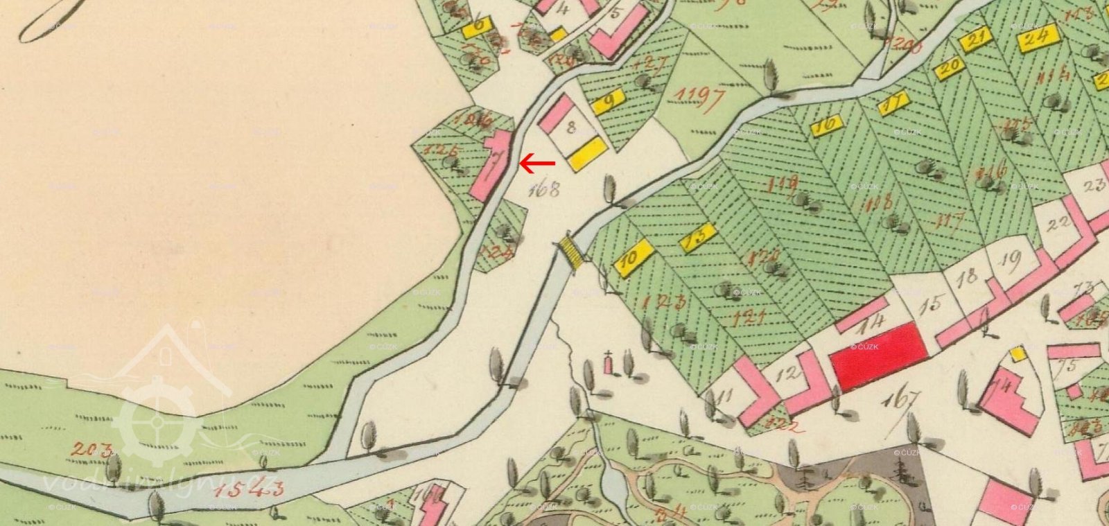 Popis1930: 1 kolo na svrchní vodu, hltnost 0,29 m3/s, spád 3,5 m, výkon 8,1 HP