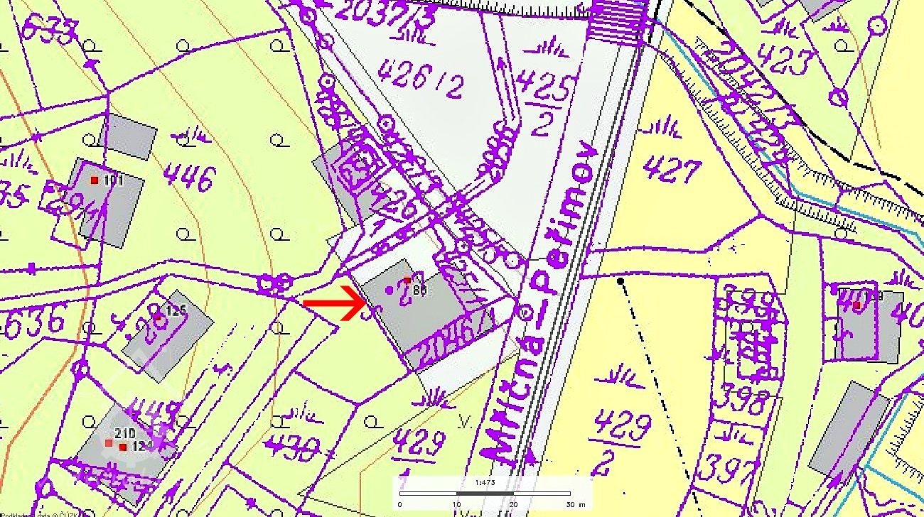 Mlýn se nacházel v zastavěném prostředí protáhlého intravilánu obce.