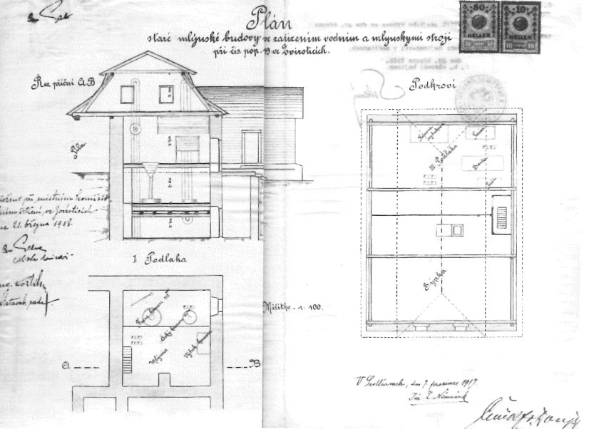 Zemské místodržitelství povolilo firmě „Bohumil Dolejš a syn“ 2. června 1909 na základě výsledku místního šetření postavit ve lhůtě dvou let ve zvírotickém mlýně č. p. 19 namísto dvou vodních kol Francisovu turbínu.787 Nicméně se zdá, že k instalaci turbíny nedošlo, alespoň ji pozdější popisy mlýna neuvádějí.