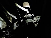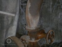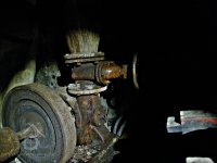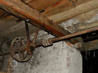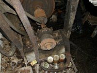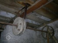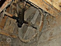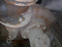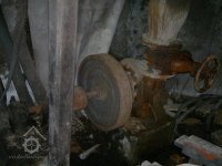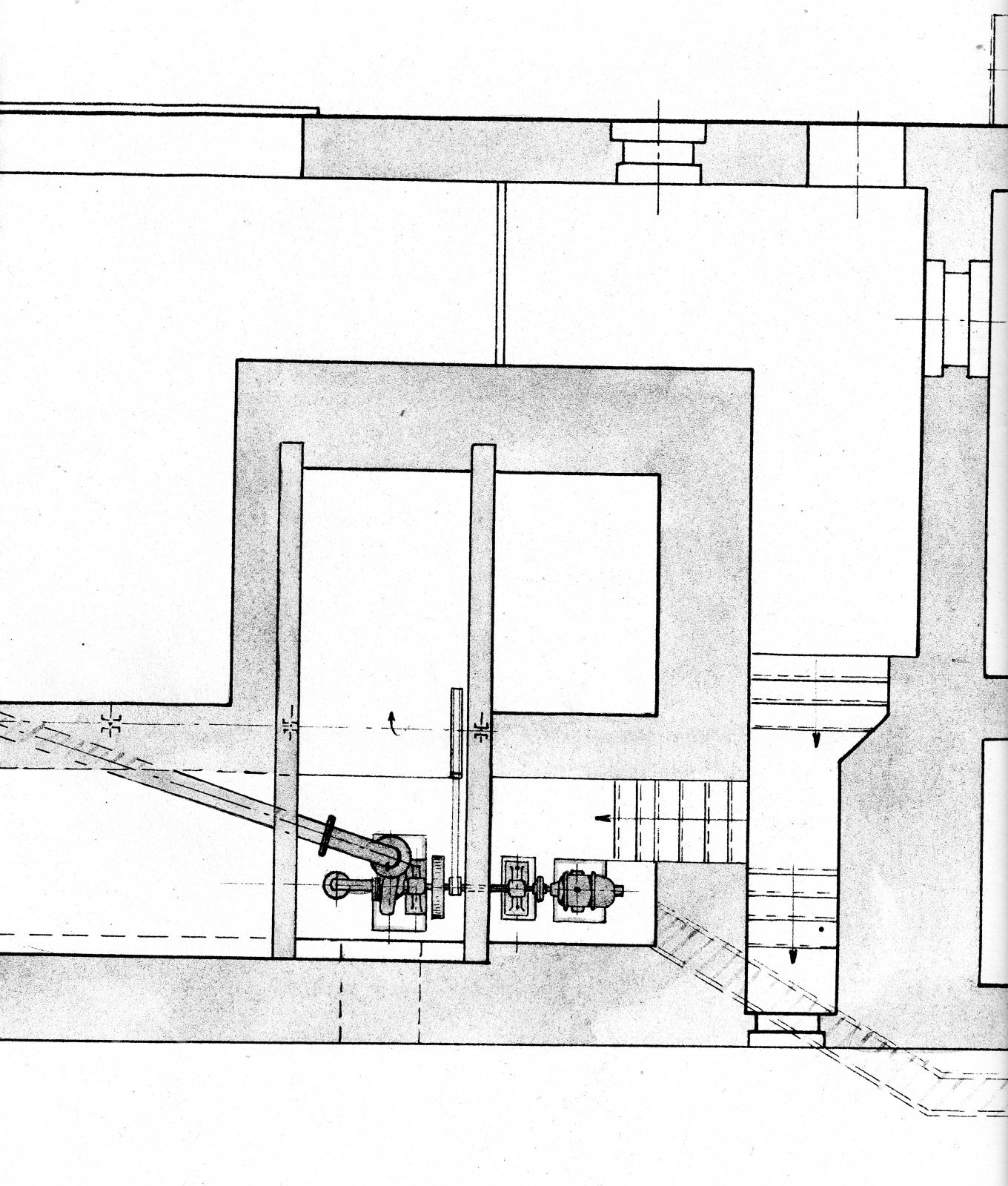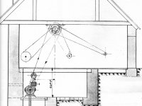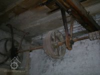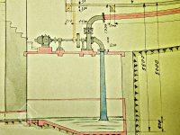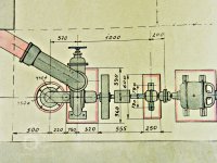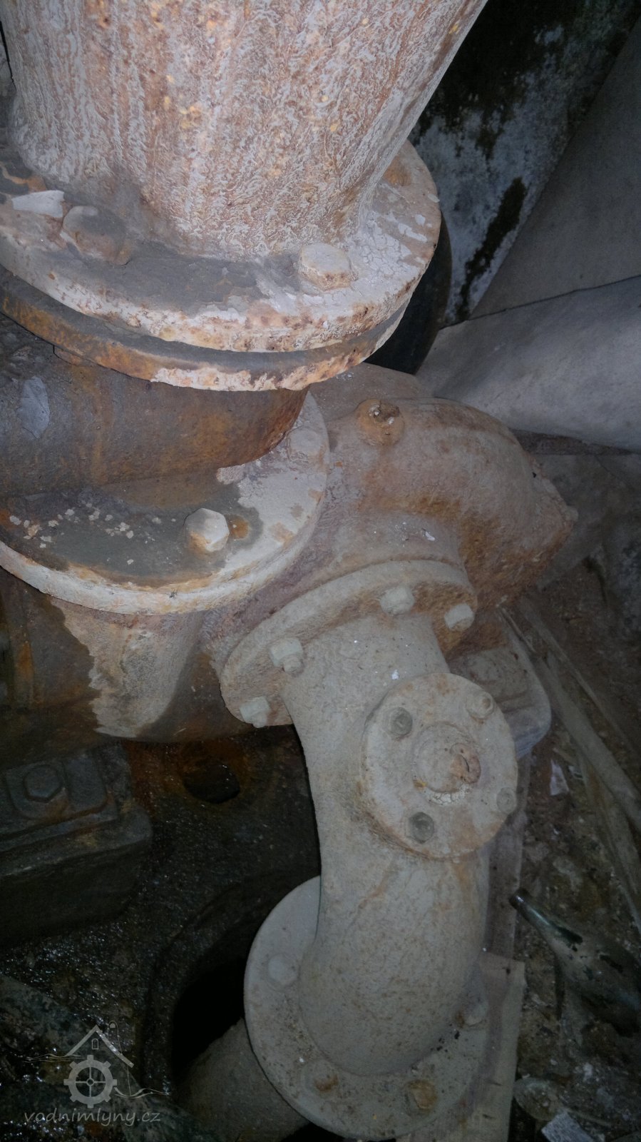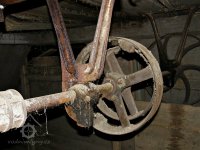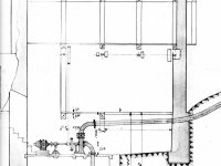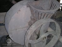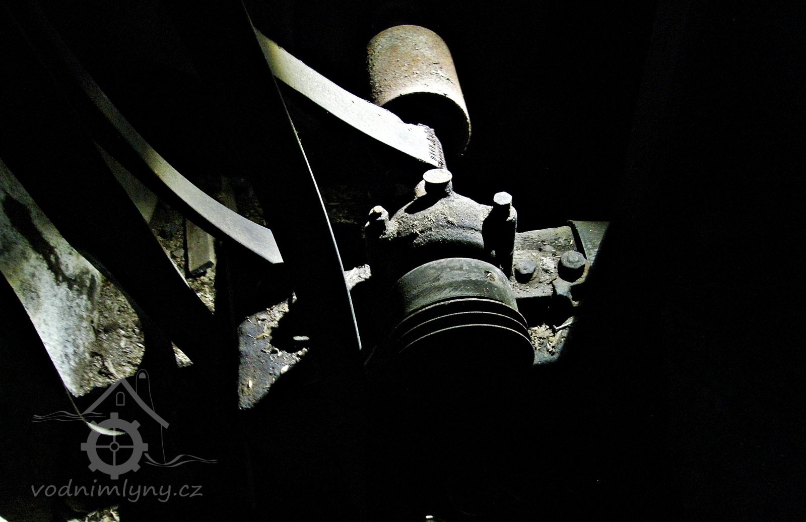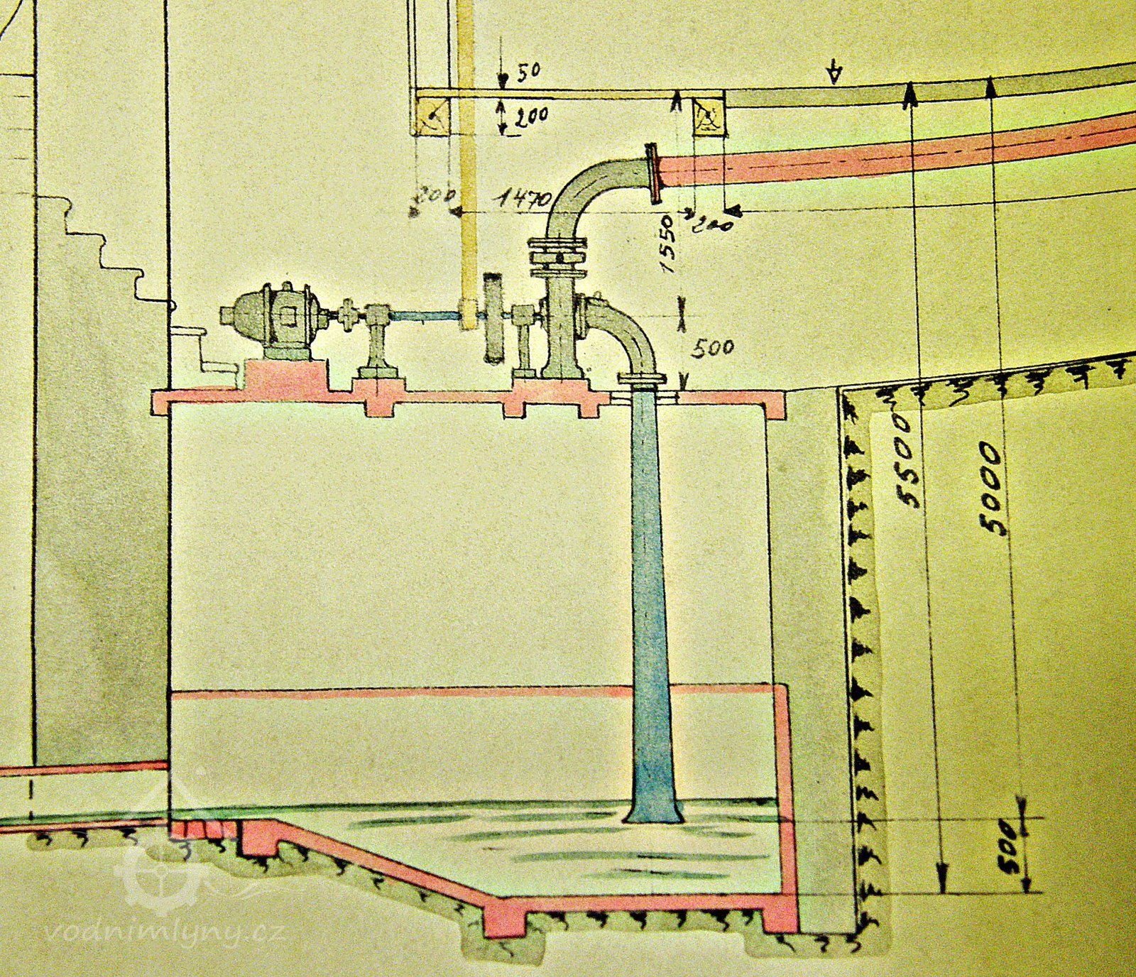 PopisMalá Francisova spirální turbina s horizontální hřídelí a setrvačníkem.