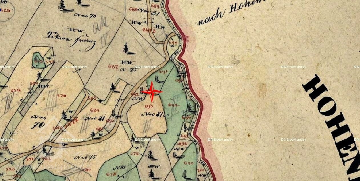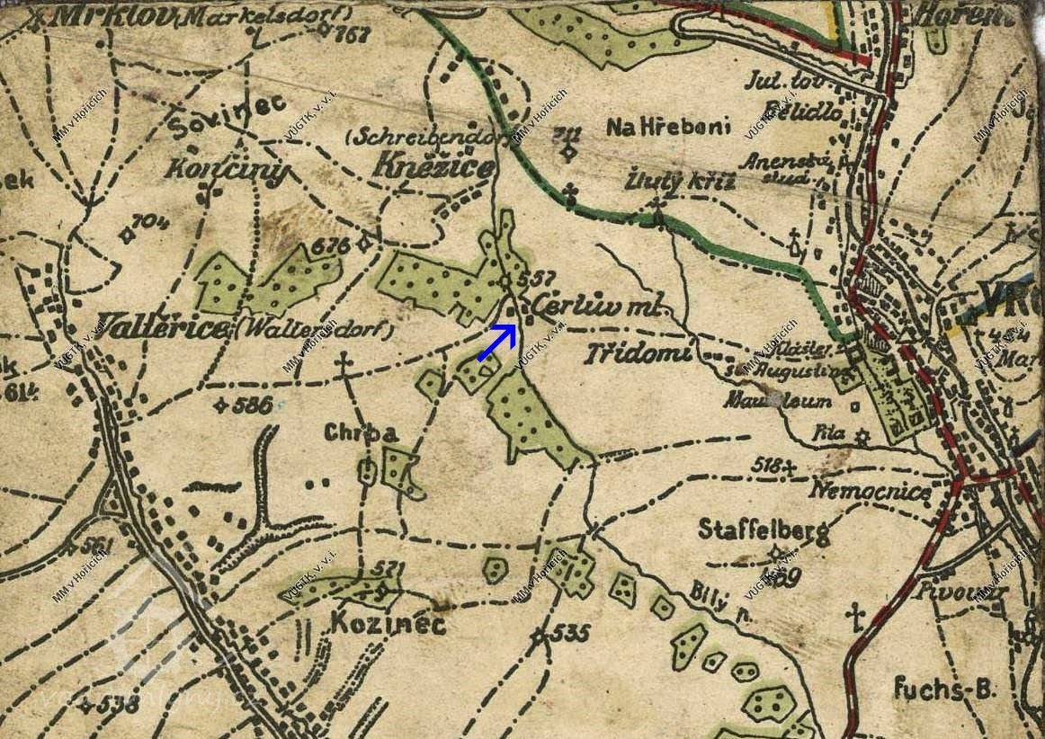 Mlýn vznikl až po roce 1842, není vyobrazen ani na Ind. sk. ani na Cís. ot. (RŠ)