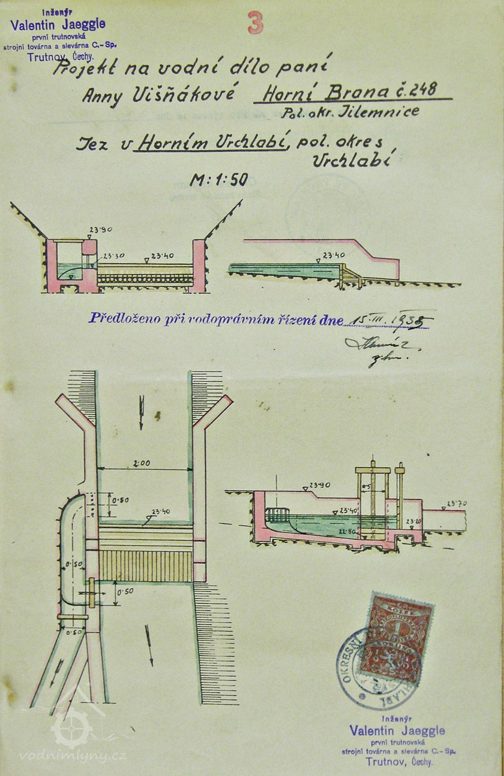 V letech 1934-1938 majitelka nemovitosti Anna Višňáková čile korespondovala s úřady ohledně úpravy vodního díla, zvláště zřízení akumulační nádrže a pořízení Francisovy spirální turbíny. (PŠ)