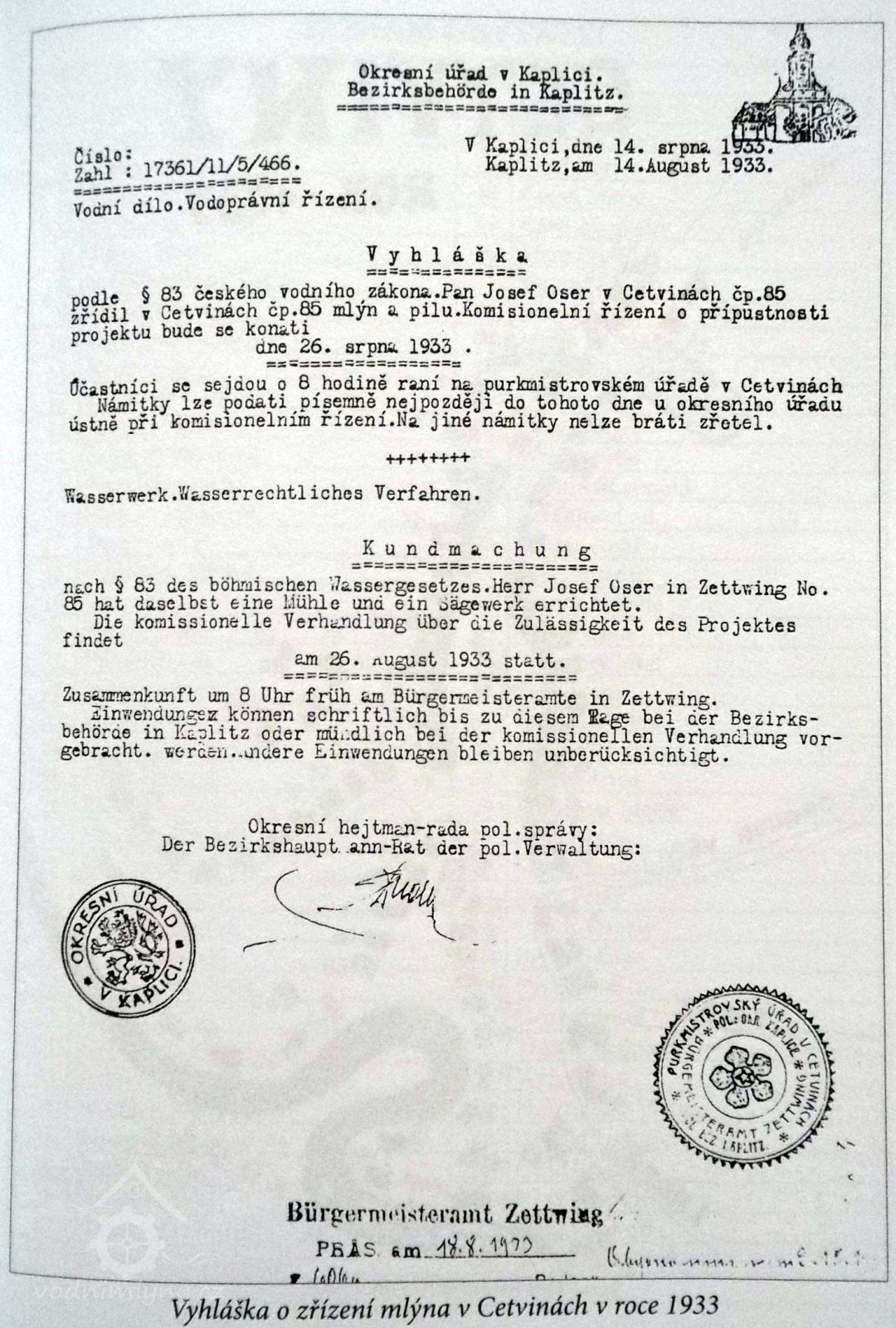 1593 Rožmberkové zakládají v Cetvinách mlýn (Herrenmühle)