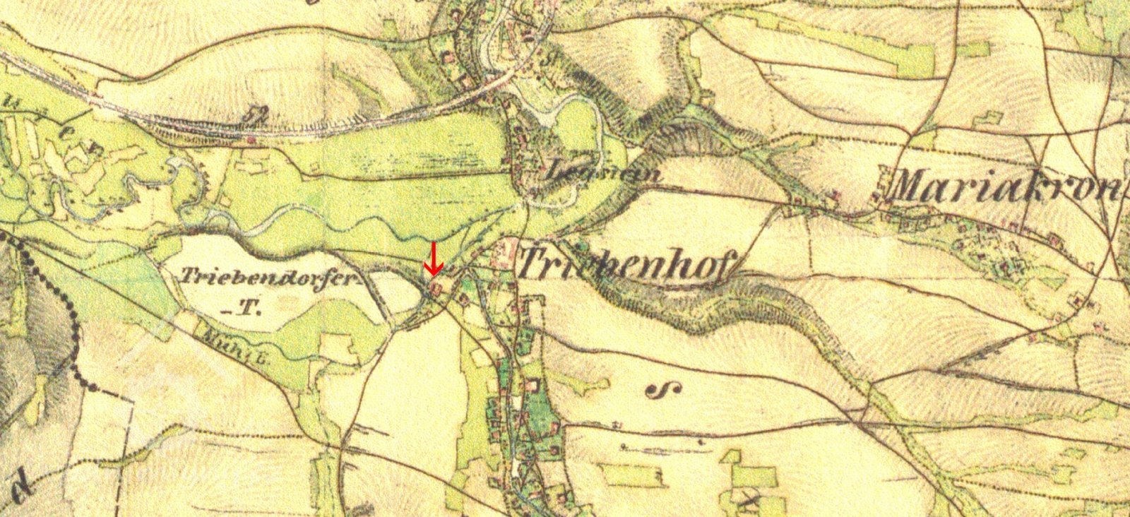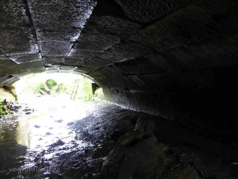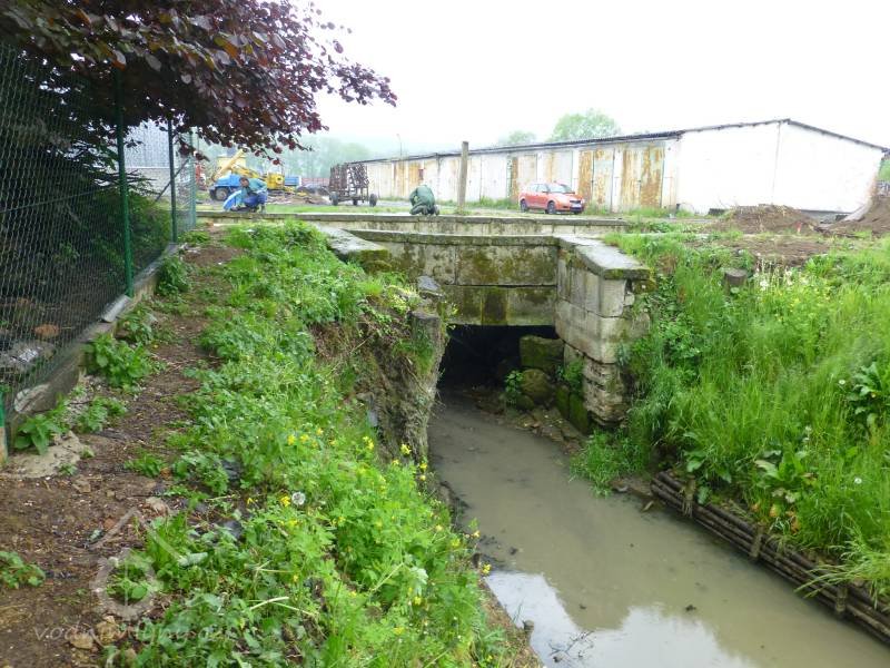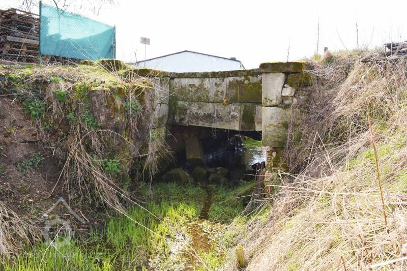 Akvadukt vybudovaný kvůli mimoúrovňovému křížení mlýnského náhonu a Třebařovského potoka měl být původně dřevěný, v r. 1840 vybudován nynější kamenný.