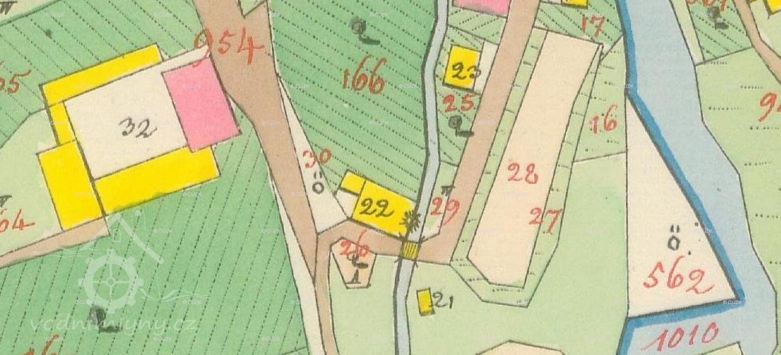 Popis1930: 1 turbína Kaplan, hltnost 0,7 m3/s, spád 2,7 m, výkon 19 HP