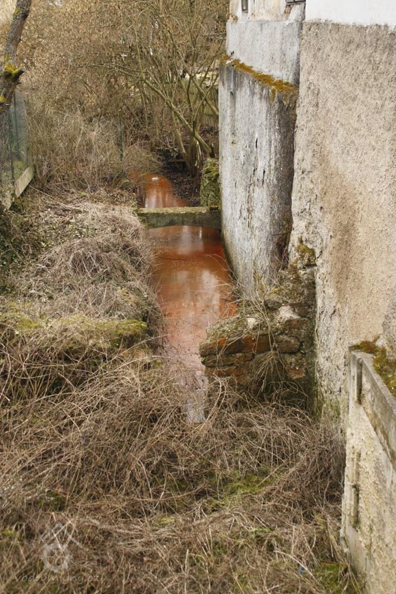 Od dnes již neexistujícího stavidla byla vedena voda kanálem mlýnskému kolu na svrchní vodu (lednice dnes neexistuje, místo vyzděno a zaneseno odpadem), odtud pokračovala dodnes zachovaným jalovým potokem zhruba 500 metrů k soutoku s potokem Bělá.