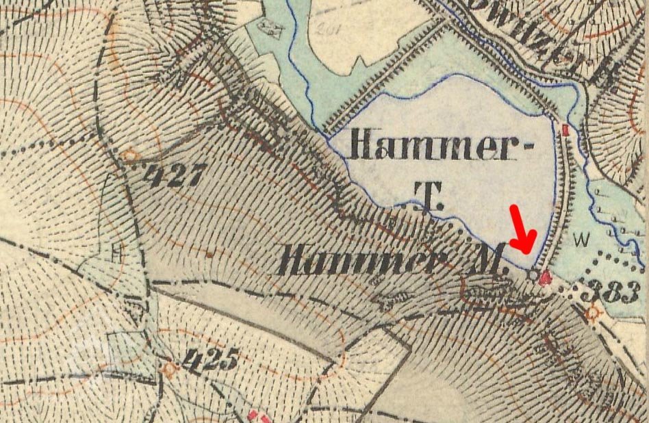 Nad mlýnem Hamerský rybník (15 ha 79 a 30 m2)), náležející statku Vísky