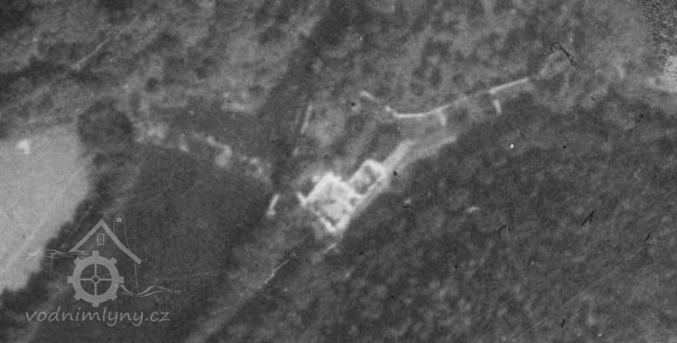 Na leteckém snímku z roku 1952 je již mlýn zachycen pouze jako zřícenina. (LR)