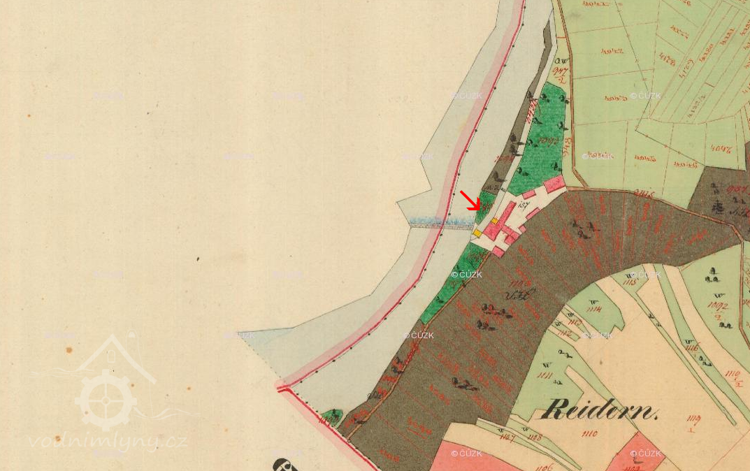 Pátý mlýn v lokalitě Devět mlýnů, 1930 na katastru Havraníků.
