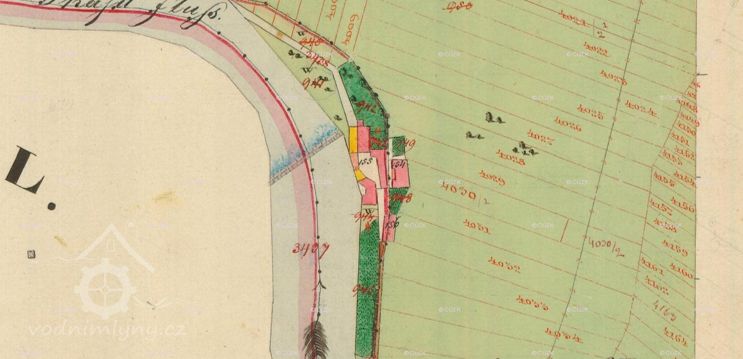 Šestý mlýn v lokalitě Devět mlýnů. 1930 na katastru Podmolí.