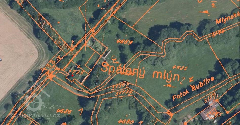 mlýnský náhon od Vodolenky, společný pro oba mlýny