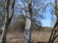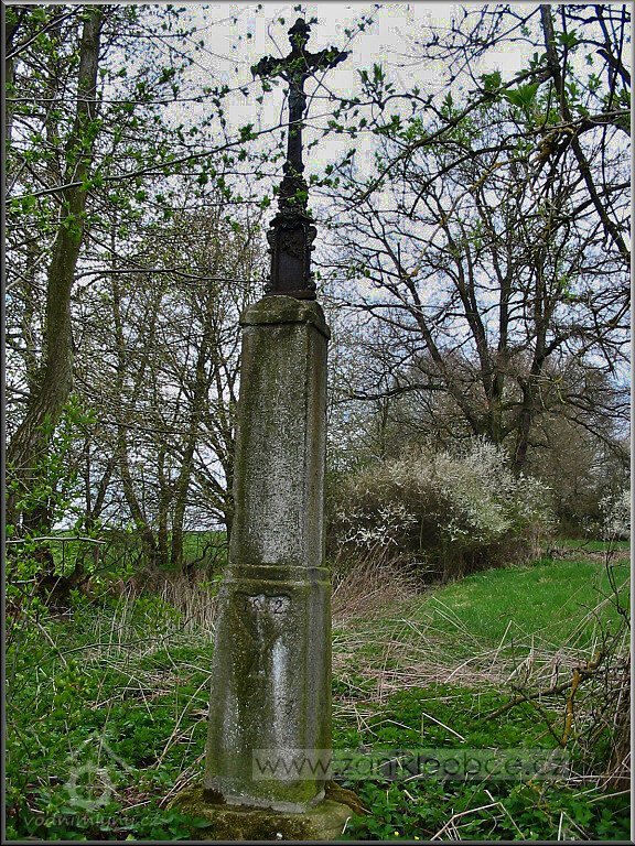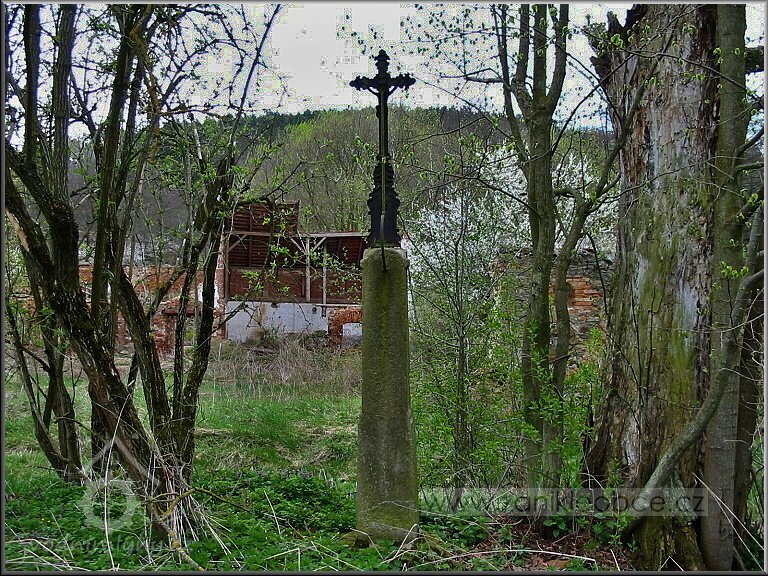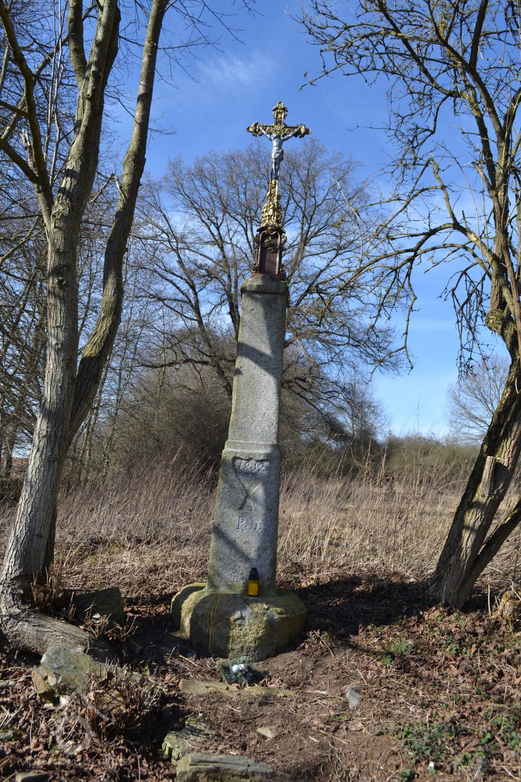 Před vjezdem do mlýna stojí litinový křížek zasazený do kamenného soklu, na němž je vyryt letopočet 1882 a monogramy P.Jirzi (donátor, patrně člen rozvětveného rodu Pavlíků). Kamenný sokl zasazen do mlecího kamene, kříž stojí pod letitou lípou,