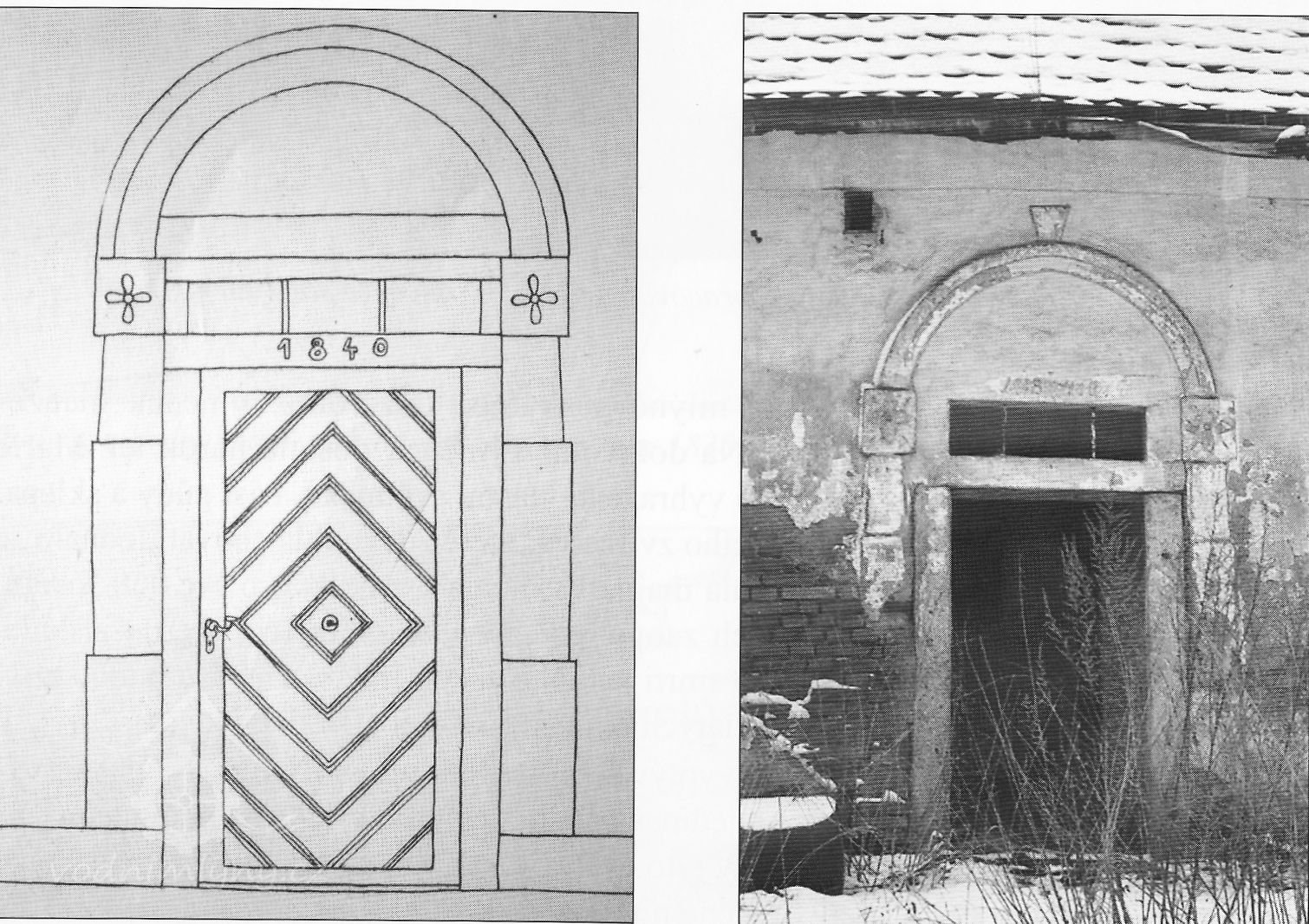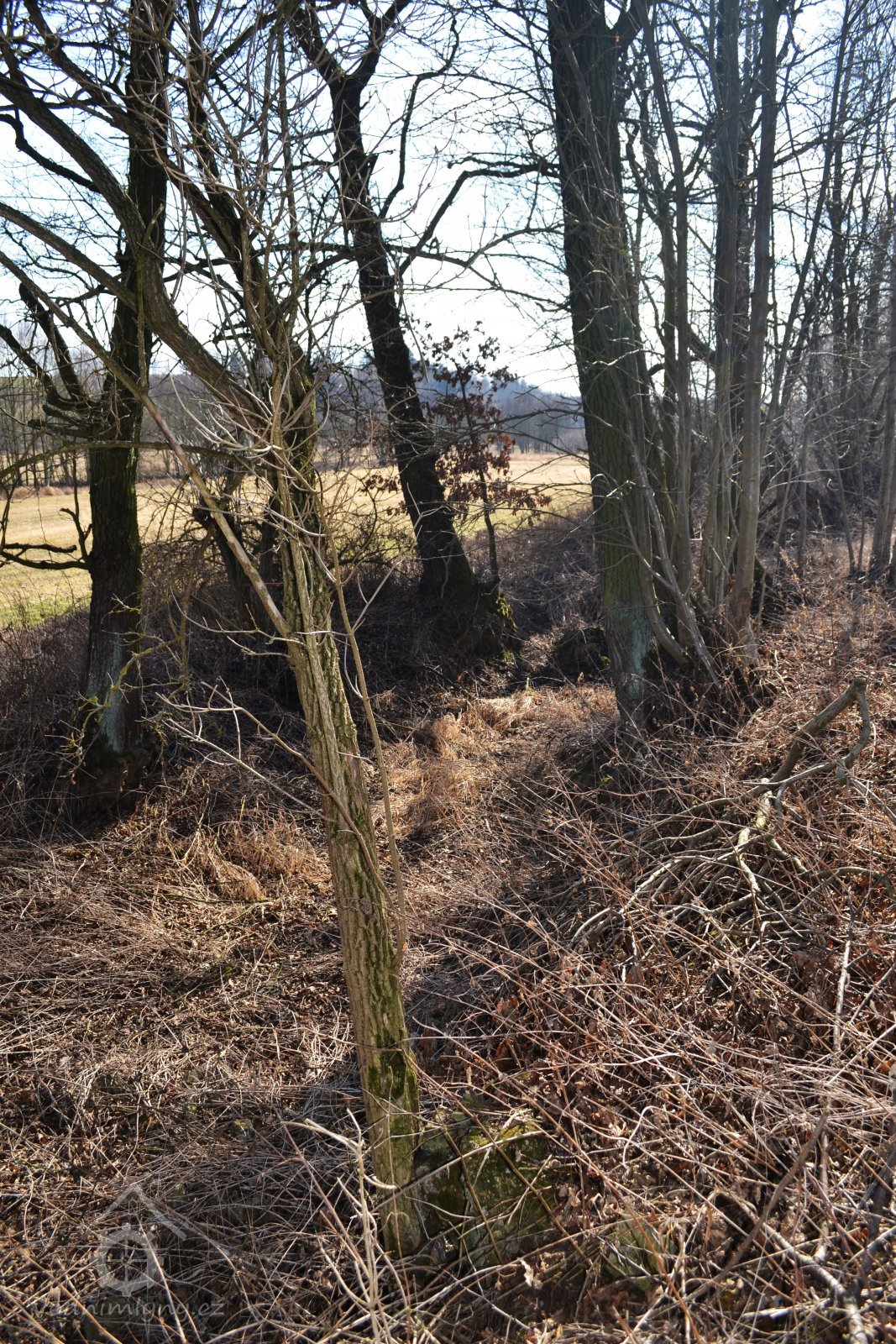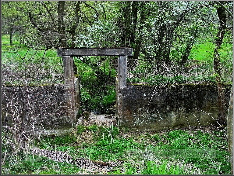 1995 zde byly ješrě 2 vyřezávané sloupky mlýnské hranice.