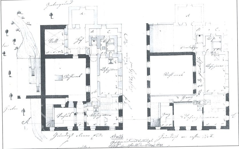 Dnešní stavba z doby kolem r. 1800, upravována ve 2. pol. 19. stol.