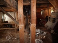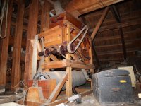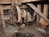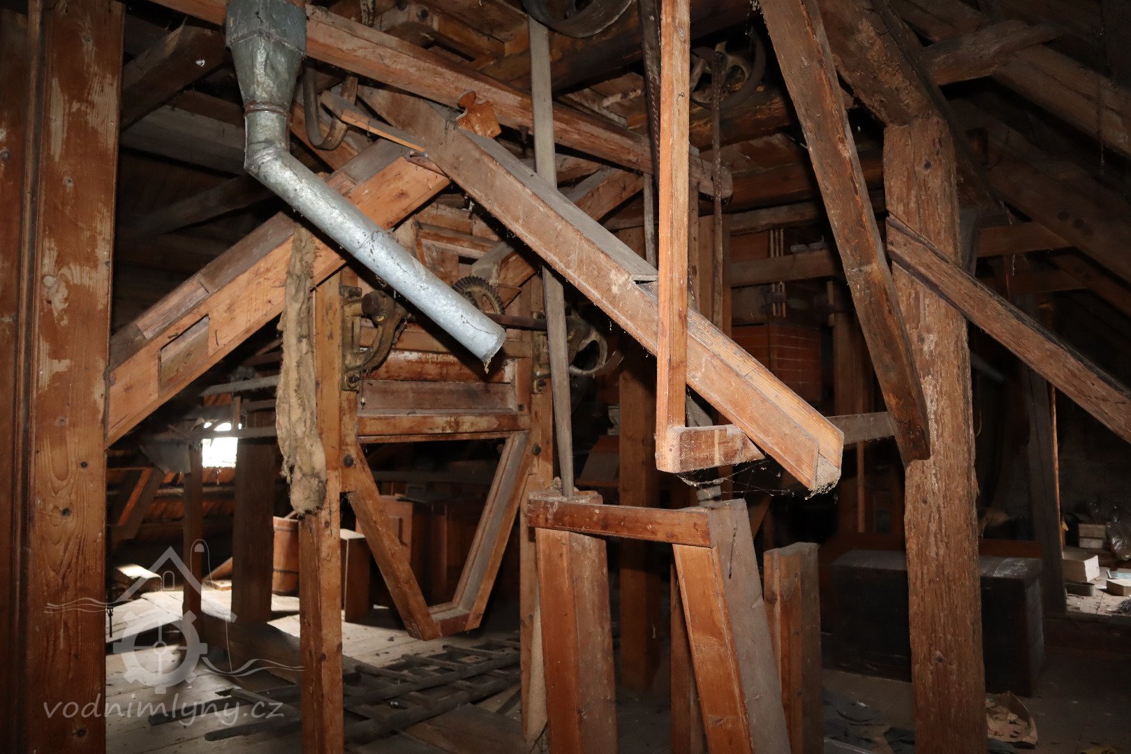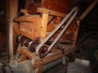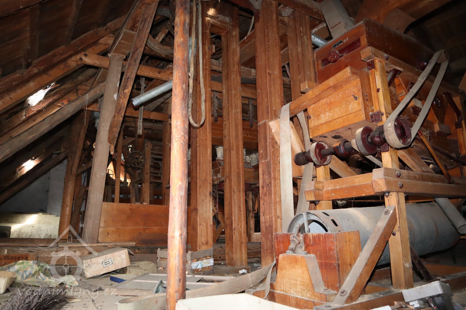 Zařízení mlýnice - podkroví, 2020, © BeJi, (Prvky na obrázku: transmise, řemenice, převody)