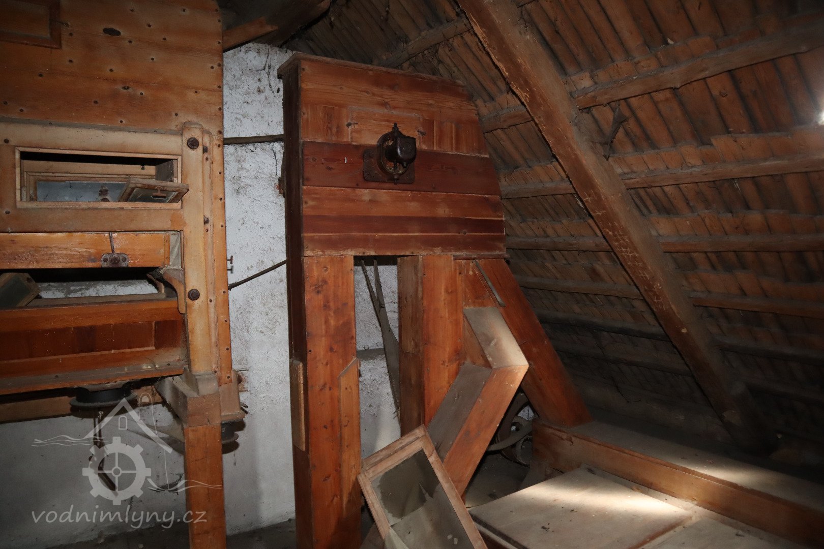 Zařízení mlýnice - podkroví, 2020, © BeJi, (Prvky na obrázku: výtahy a dopravníky)