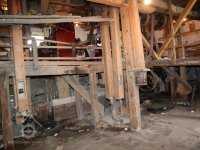 Zařízení mlýnice - podkroví, 2020, © BeJi, (Prvky na obrázku: transmise, řemenice, převody, výtahy a dopravníky)