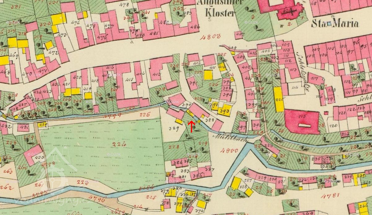 Pohled na mlýn, v popředí zbytky hospodářské budovy Kupilíkova mlýna, 2010, © Zdeněk Procházka