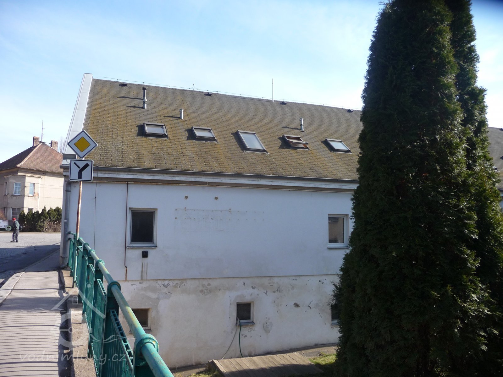 U mlýna je patrné, kde se nacházel odtokový kanál, náhon. Náhon a odtokový kanál jsou zatrubněny, voda protéká pod most a za ním vytéká.