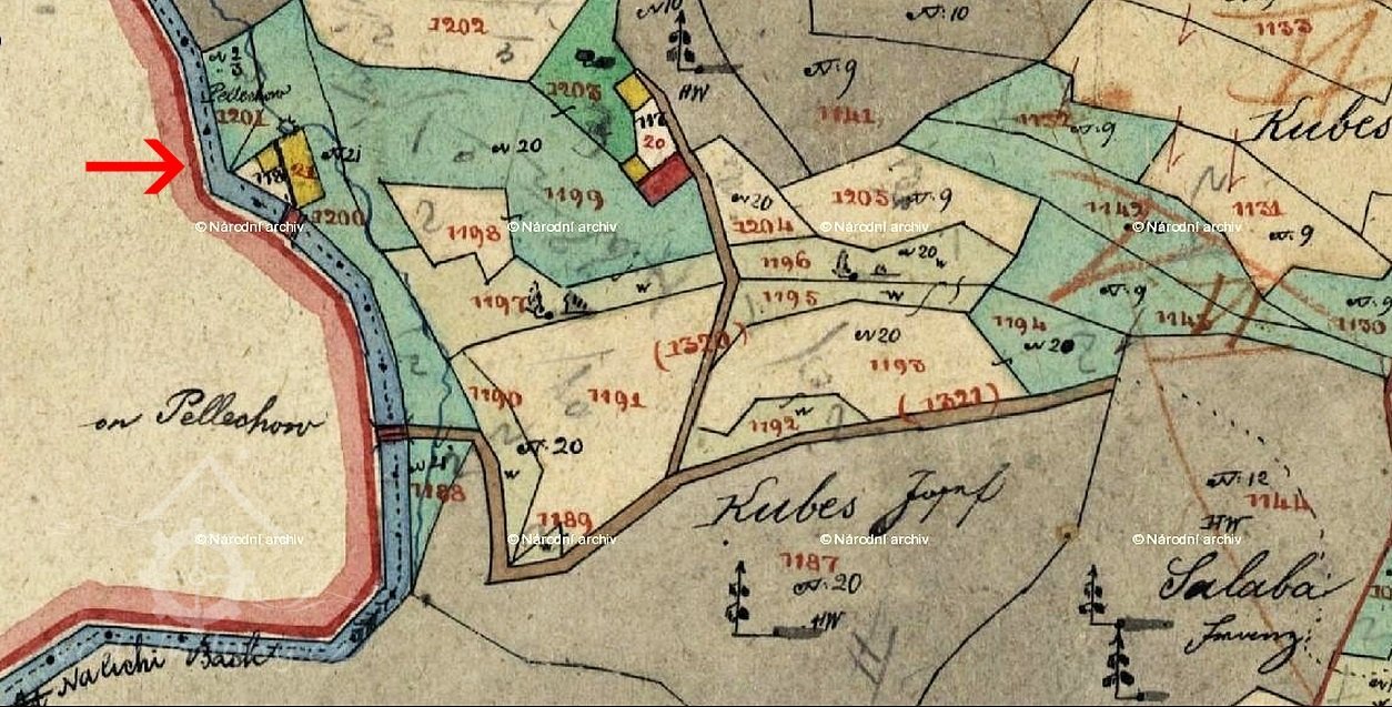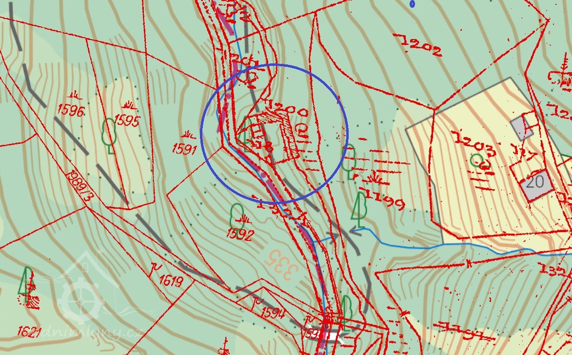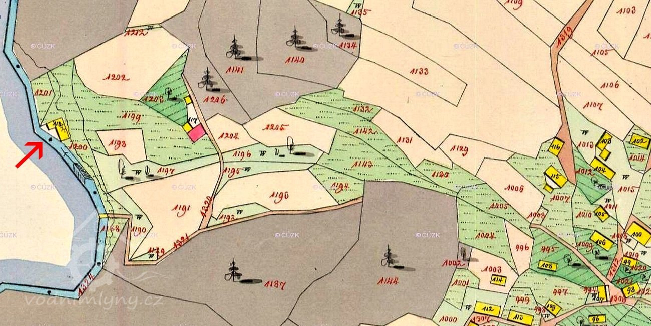 1860 zřízena akumulační nádrž na p.p.č. 1593 a 1620, mlynář měl povinnost udržovat pěšinku na břehem, aby vždy zůstávala schůdná.
