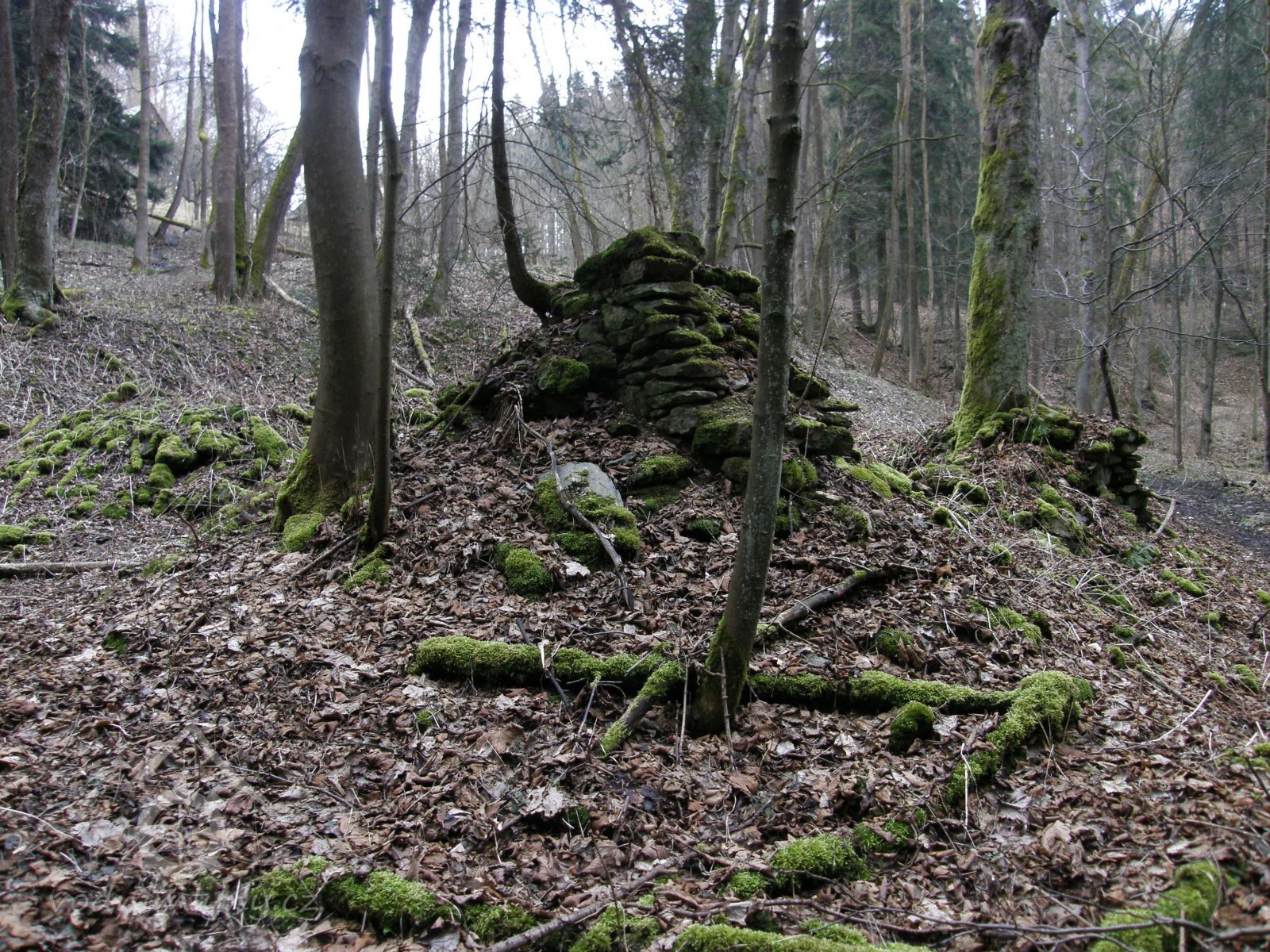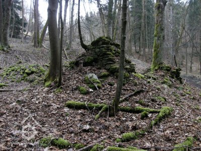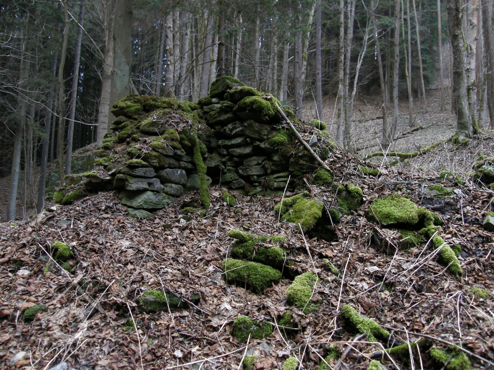 Zanikající zřícenina mlýna založeného 1745 na samotě v lese.
