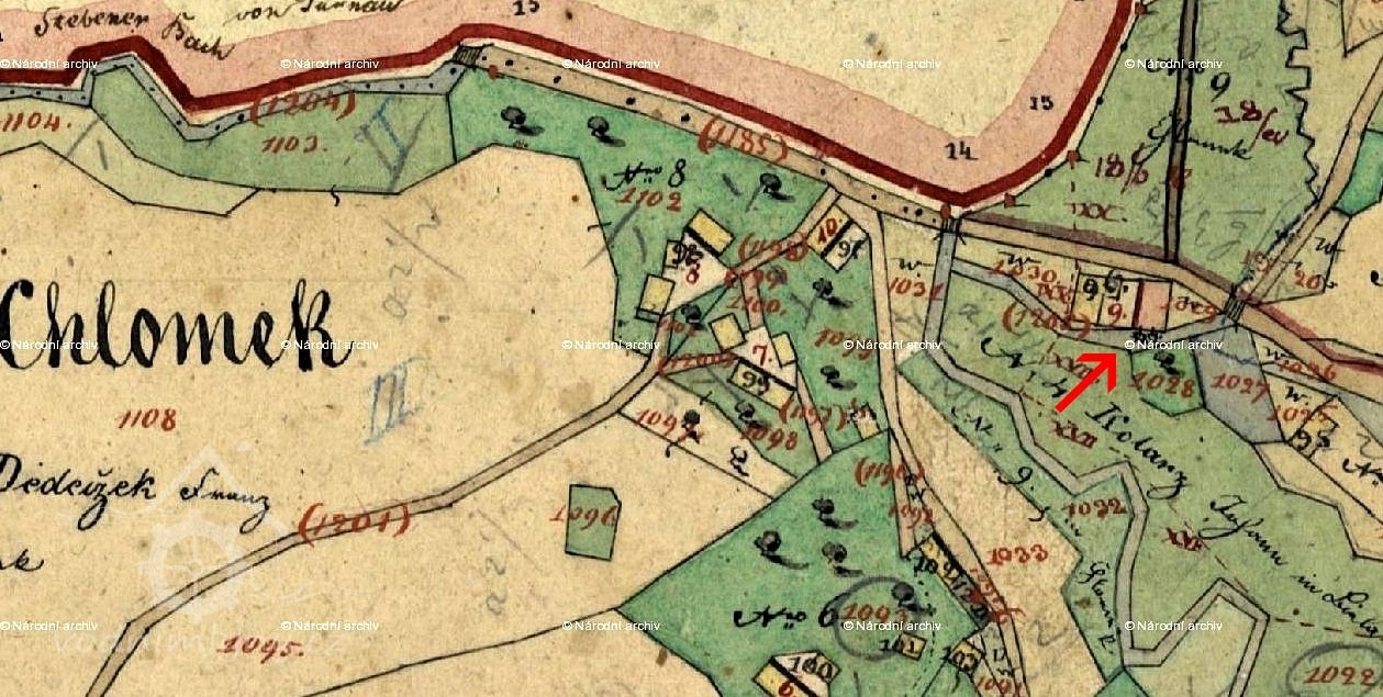 1844 nájemce Josef Drahoňovský, rolník z Chlomku čp. 2 se synem Josefem