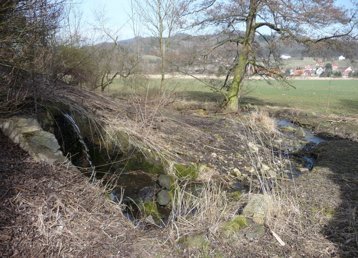 Umělý mlýnský náhon, dílo Jan Brtvína z Ploskovic z 18. stol., svádí vodu téměř po vrstevnici z Dlouhého vrchu a končí na zámku v Ploskovicích. Všechny přítoky jsou téměř kolmé na tento náhon. 1986 chtělo místní JZD náhon rozorat, naštěstí k tomu ale nedošlo.