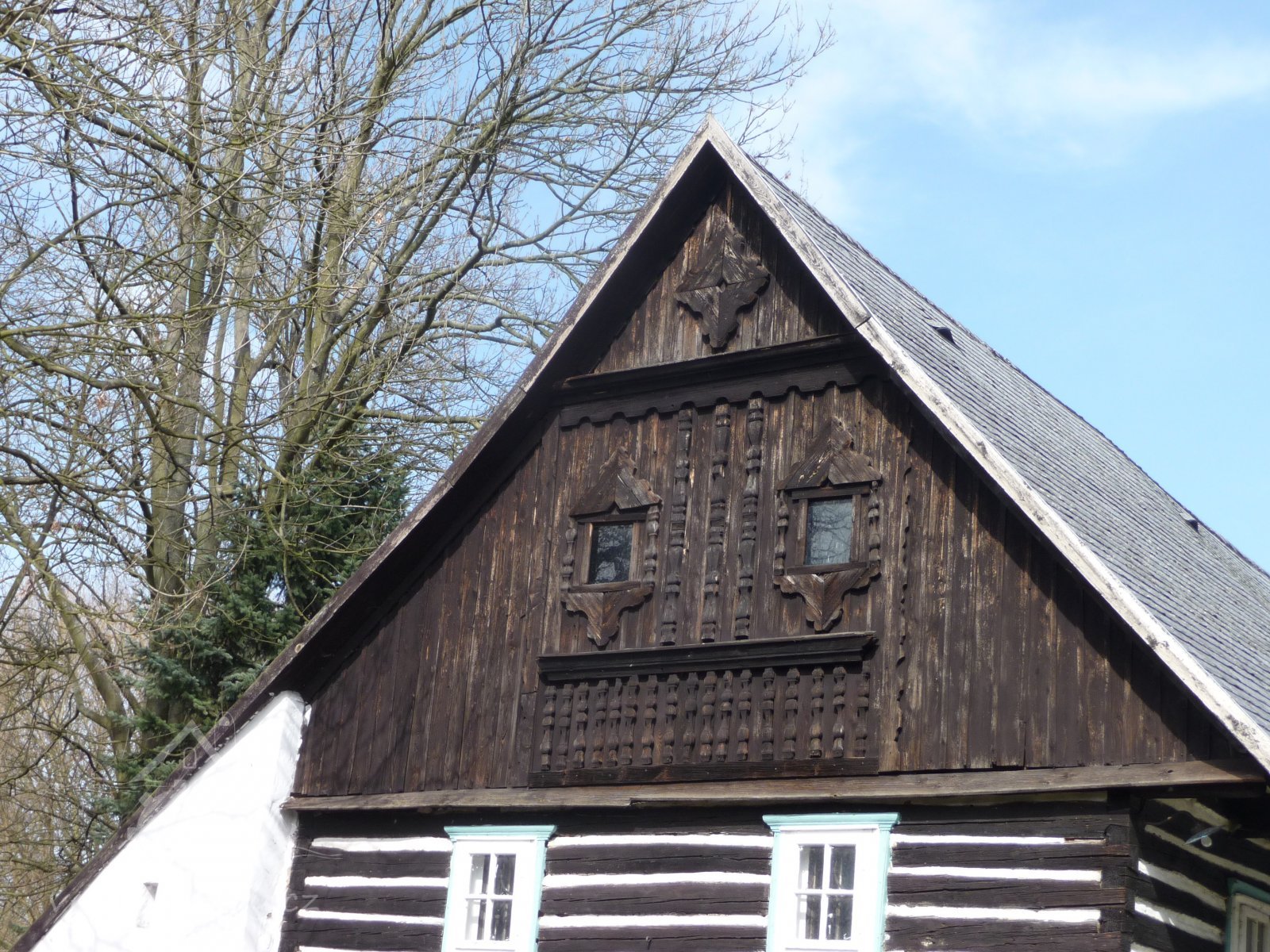 Špýchar je zděný s roubeným a hrázděným patrem.