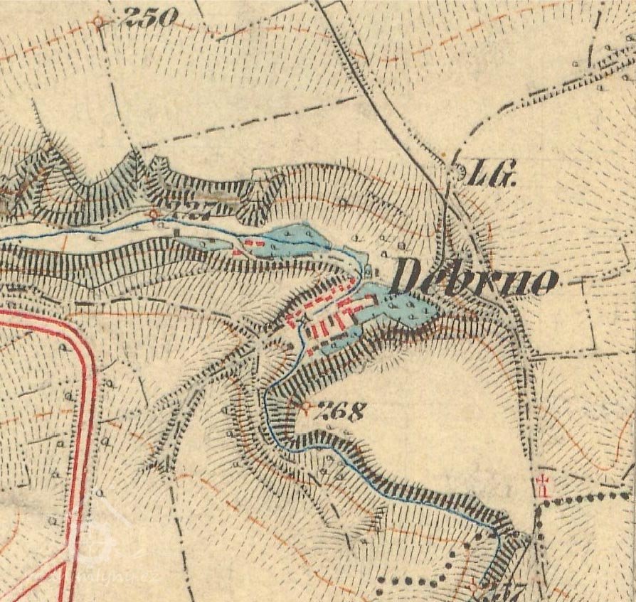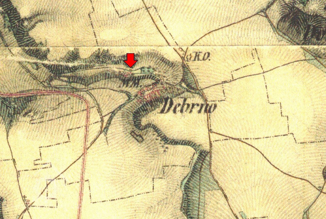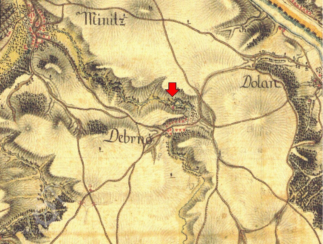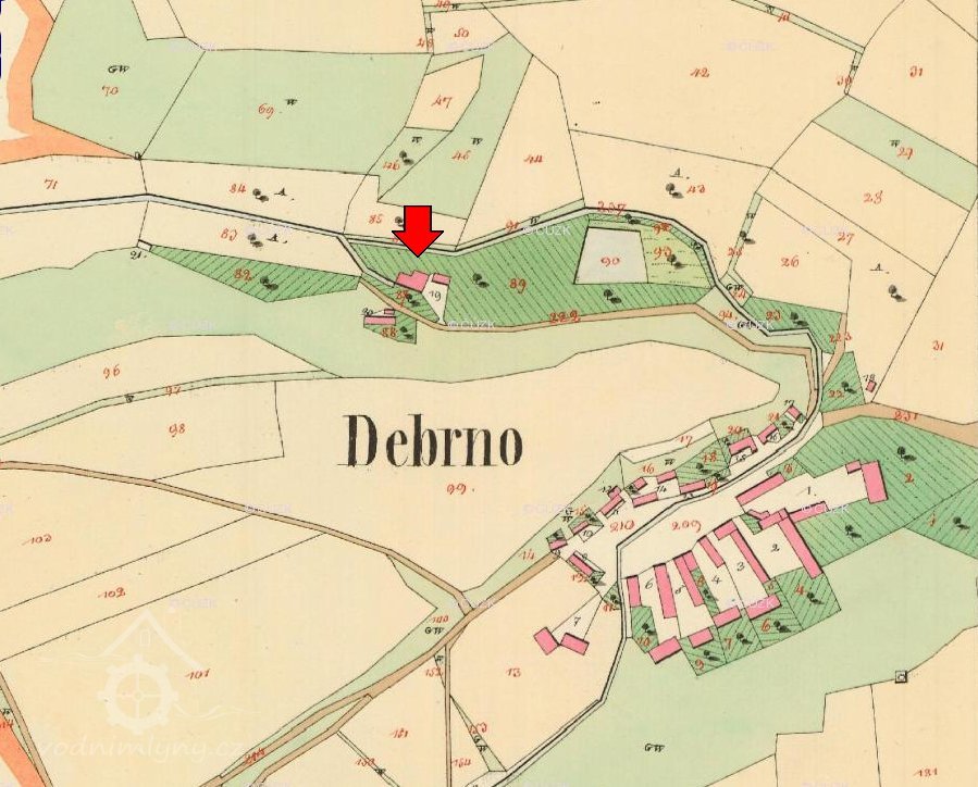 Zápis ve vodní knize: "Voda používá se ze dvou studánek, jedna v obci Debrné, druhá asi 100 kroků za obcí k Tursku: obě vody tečou do nádržky a ta, když se naplní, mele se chvíli a zase se nadržuje. Tento potůček přichází v Minicích do Zákolanského potoka.