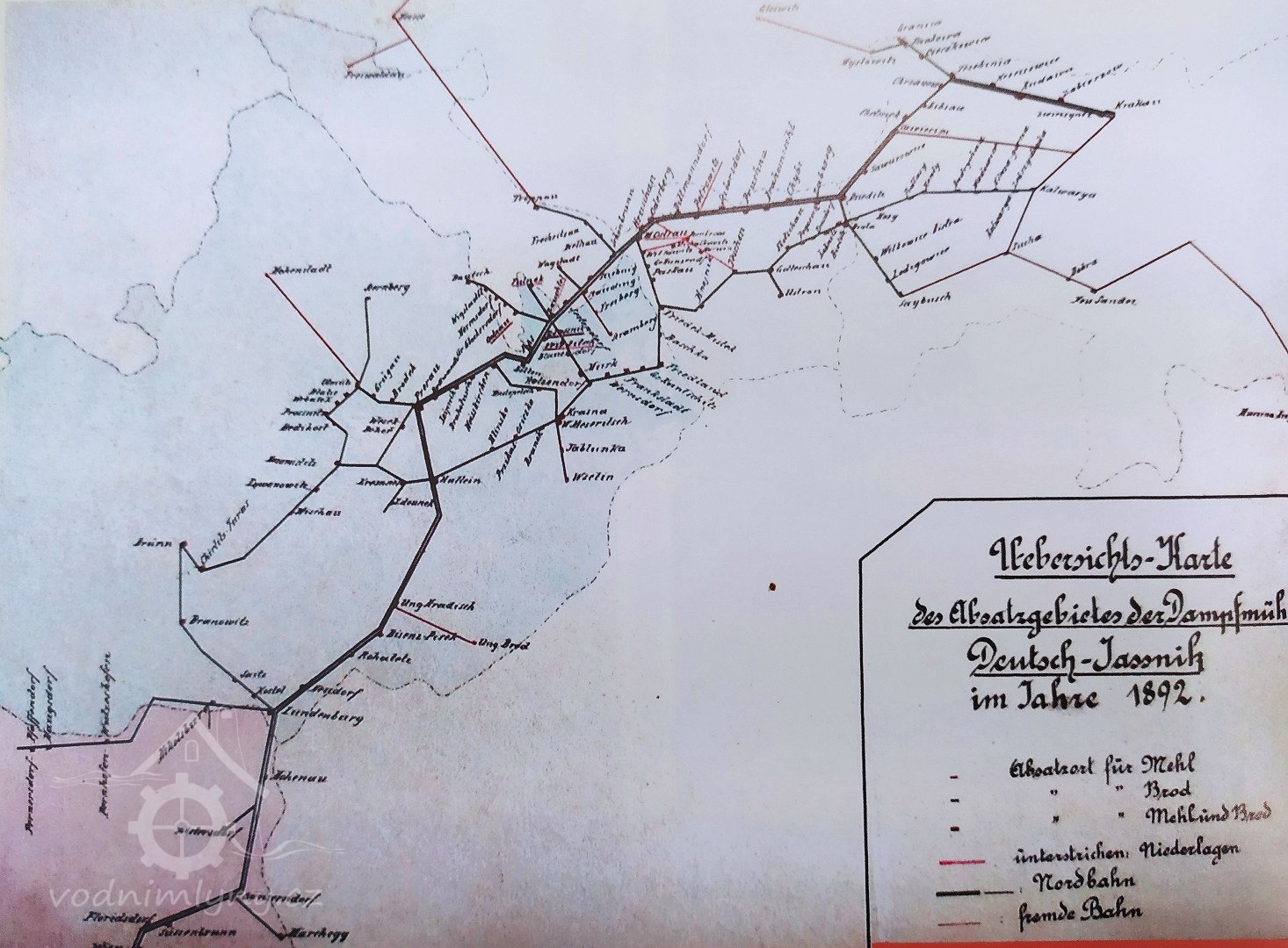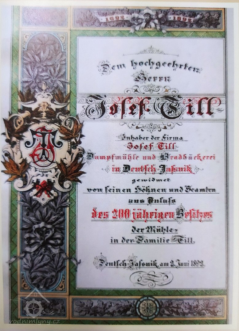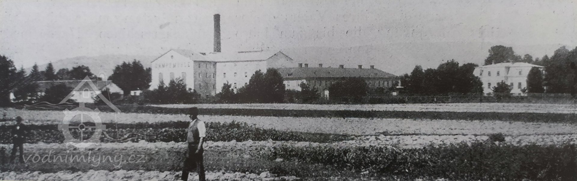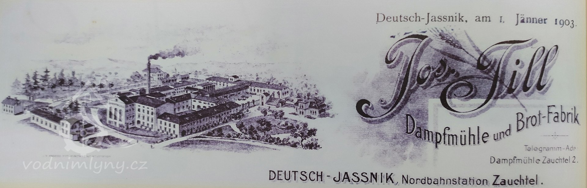 mlýn spojen s Chářovským mlýnem pod firmou "Richard Mückusch, parní mlýny, továrna na pšeničný škrob a sirup Krnov a Jeseník nad Odrou"