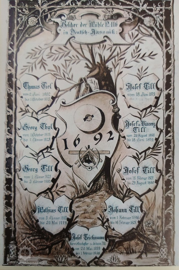 1692 - Rudolf Christoph hrabě z Witten nechal postavit severně od obce na řece Odře nový panský mlýn, 2.6. v témže roce tento "nový rybniční mlýn" odkoupil Thomas Till z Nového Jičína za 300 zlatých rýnských s povinností mlít pro poddané. V majetku rodiny Tillovy mlýn zůstal až do roku 1938.