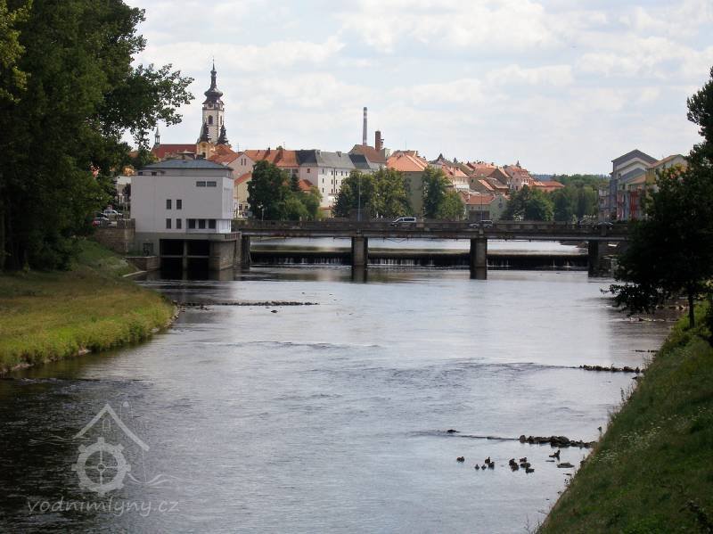 Na místě bývalého Cafourkova mlýna postavená vodní elektrárna kompenzovala nedostatečné dodávky elektřiny z městské elektrárny a Mydlovar. Ve strojovně je osazena Kaplanova turbína o výkonu 494 HP. Elektrárna je udržována včetně původního strojního zařízení. Součástí provozu mostu s válcovým jezem je na pravé straně malá vodní elektrárna včetně náhonu a česel. Stavba elektrárny je obdélnou stavbou tvořenou dvěma na sebe dosedajícími kubusy, přičemž horní je rozměrově větší s předstupující římsou a rovnou střechou a dosedá na spodní kubus menšího rozměru. Elektrárna má jednoduchý architektonický koncept s rozvrhem pravidelně rozmístěných úzkých vertikálních oken, vytvářející drobný tabulkový okenní rastr. Vertikální okna jsou doplněna menšími horizontálními okny a vjezdy s plechovými vraty.