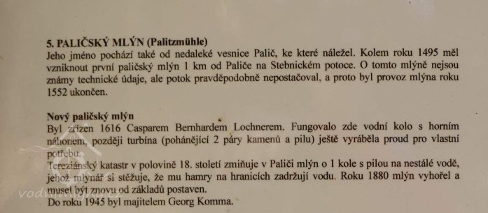 r. 1495 - uváděn vznik prvního Paličského mlýna na Stebnickém potoce, mlýn patřil vsi Palič